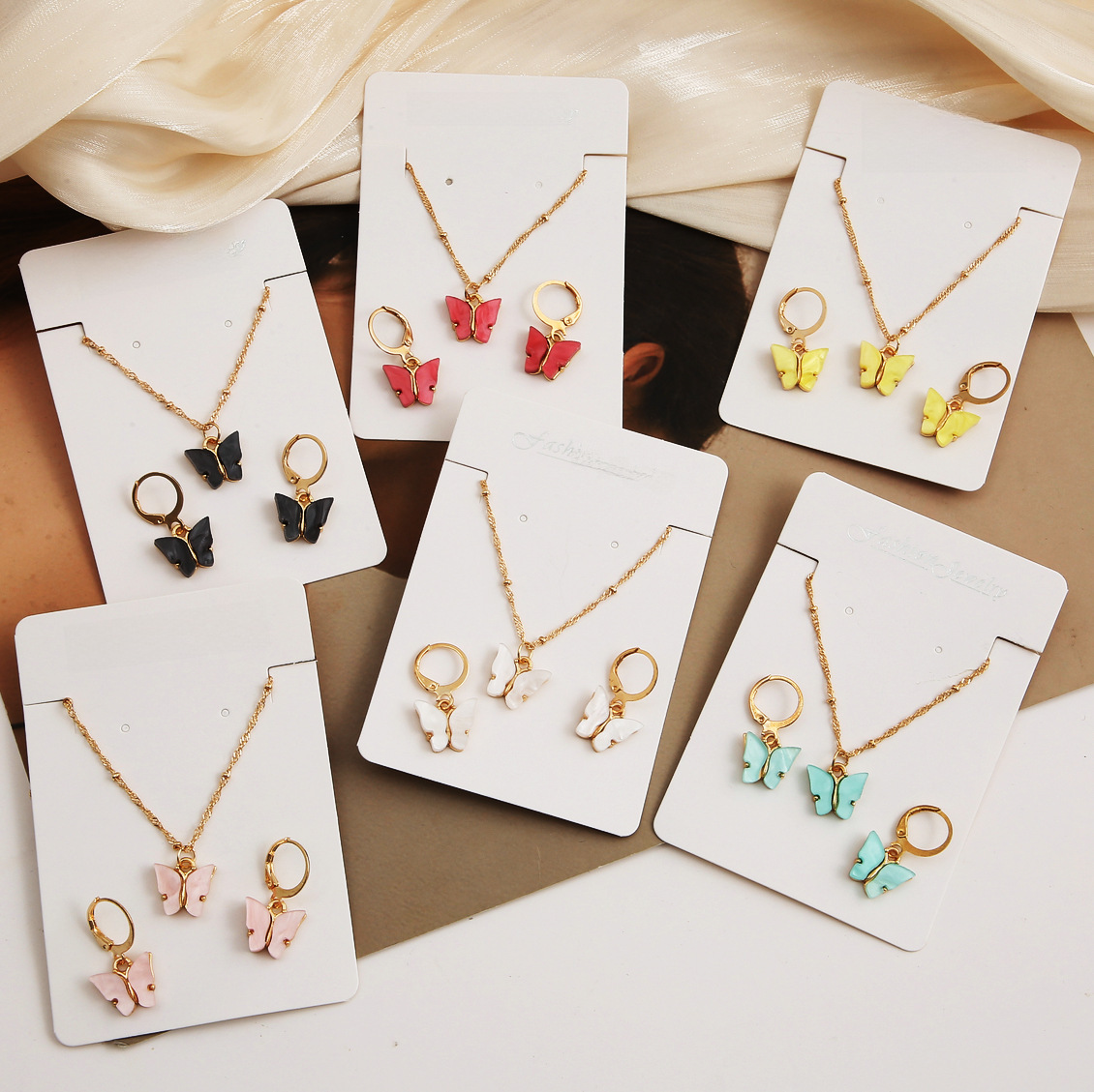 | nameOriginal | Cross-border hot-selling colorful acrylic butterfly necklace suit retro simple jewelry suit stud earrings necklace suit |