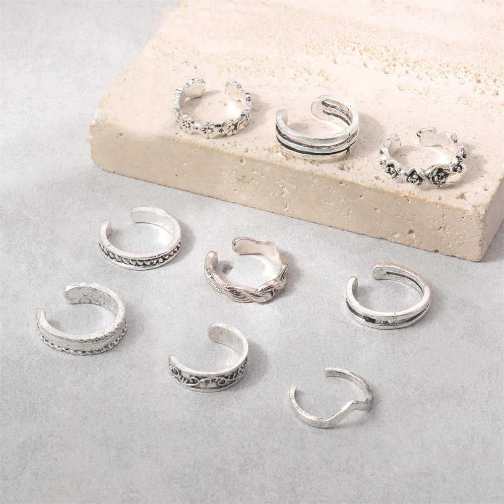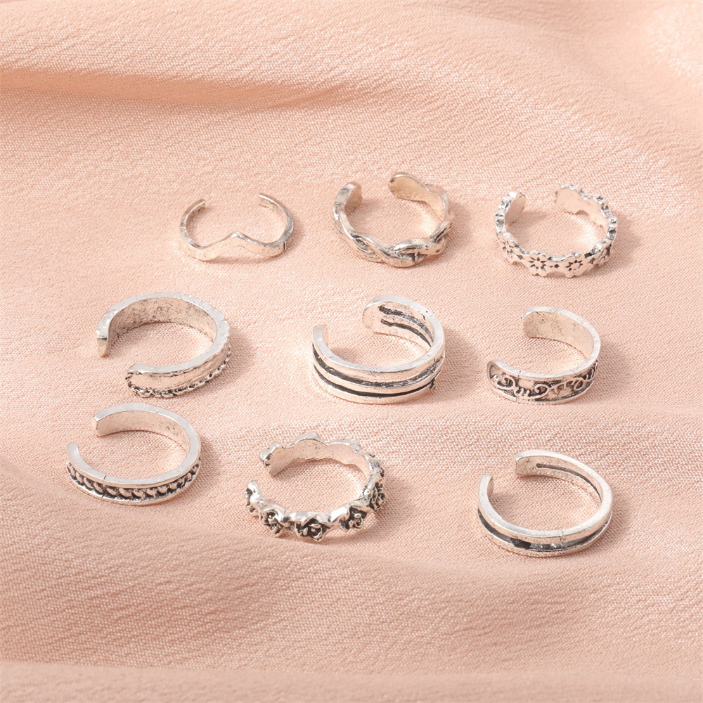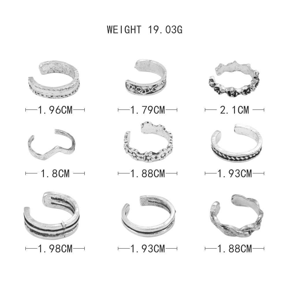 | nameOriginal | Cross-border hot-selling combination ring Europe and the United States retro old flower opening 9 suit ring jewelry factory direct sales |