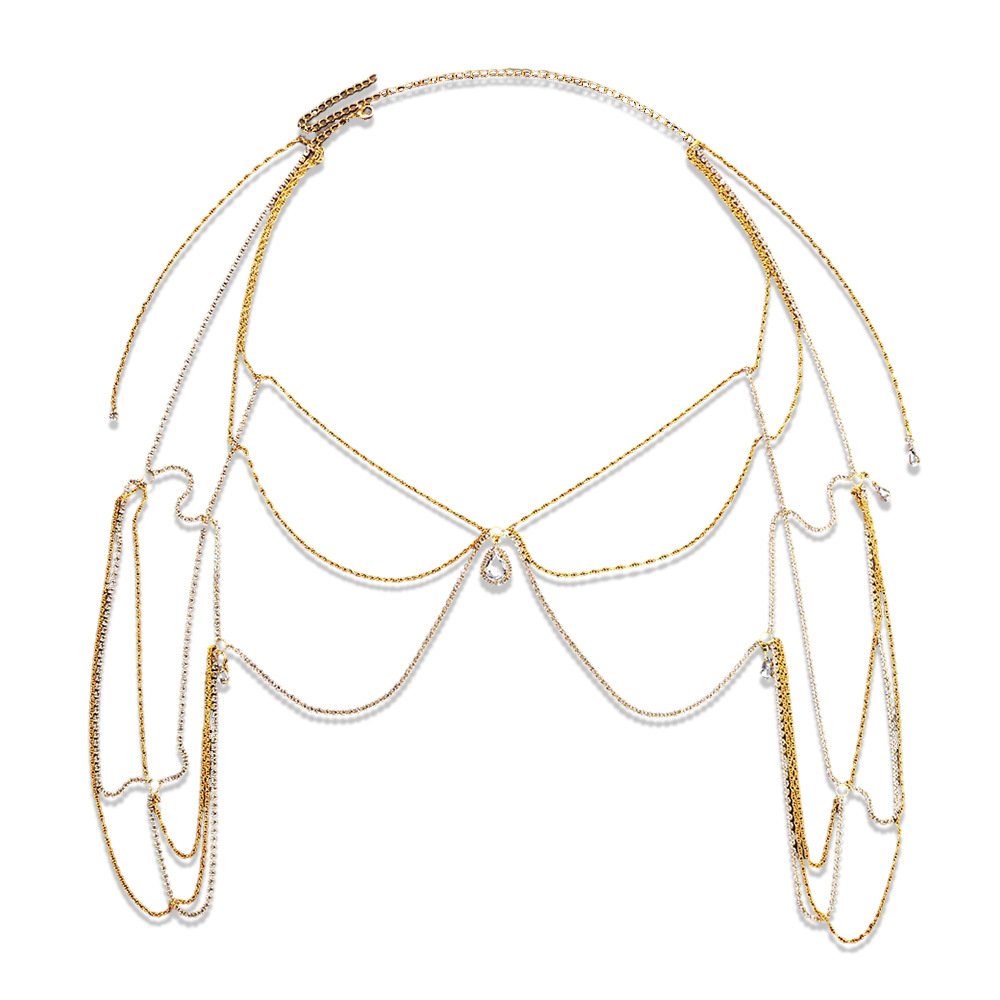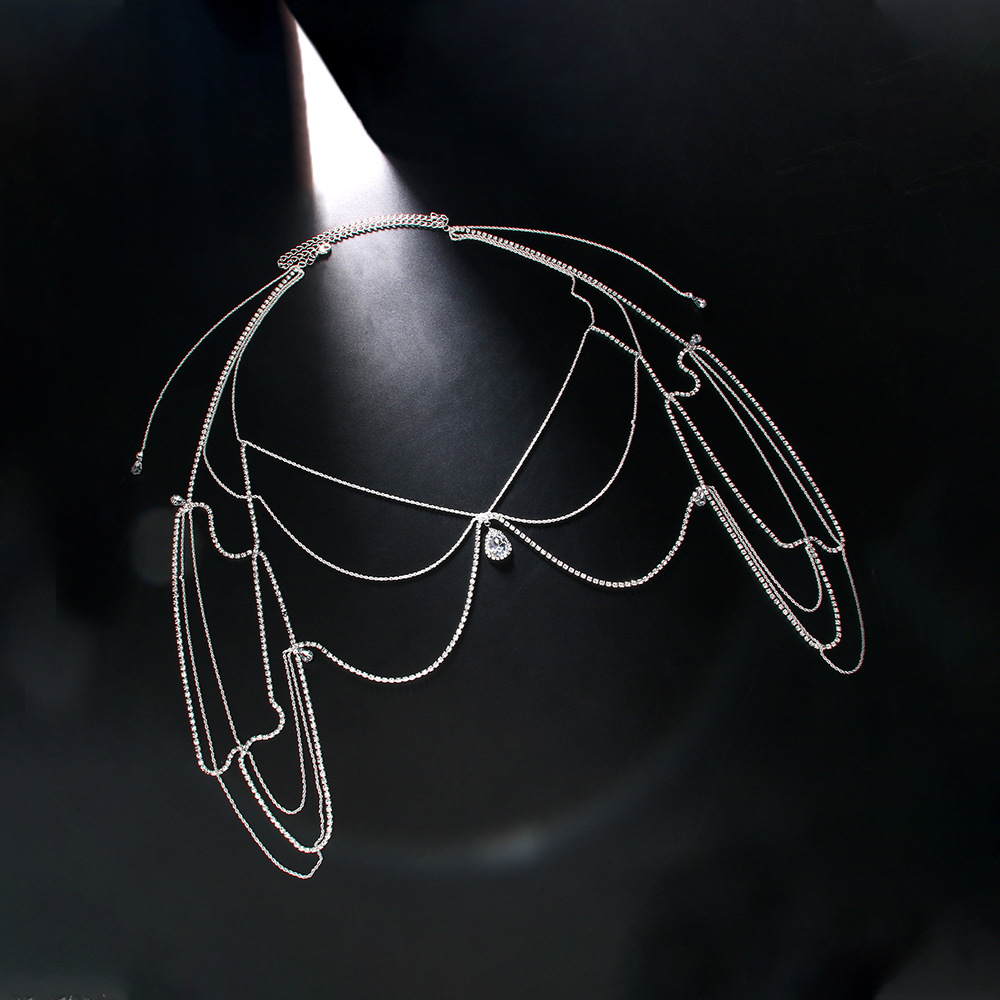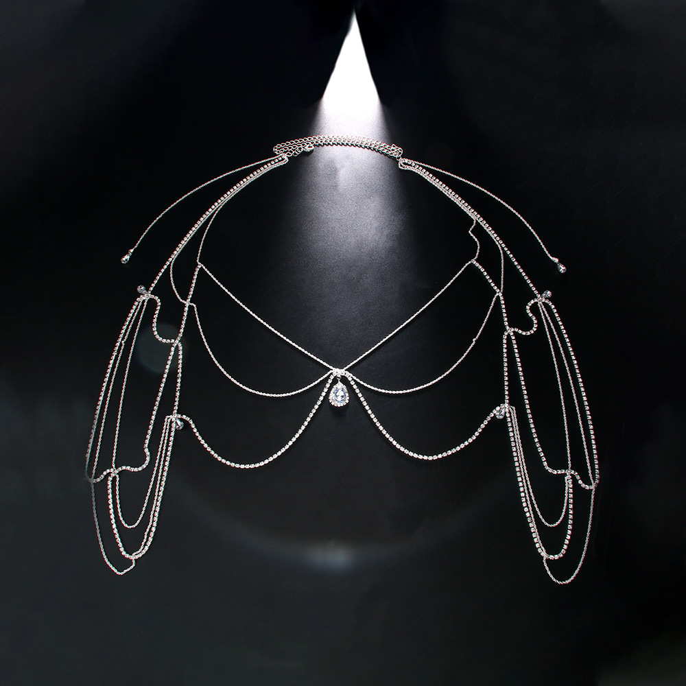 Cross-border hot selling multi-layer Shoulder chain female European and American bride simple water drop pendant Shoulder decoration rhinestone body chain Shoulder