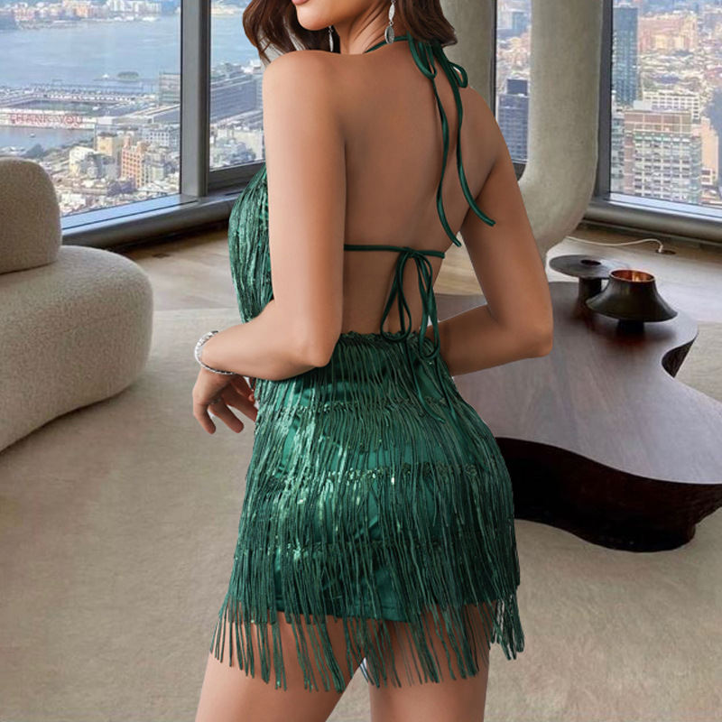 | nameOriginal | Cross-border hot selling new sexy nightclub style suspender skirt pants European and American fashion hot girl backless sequined tassel jumpsuit |