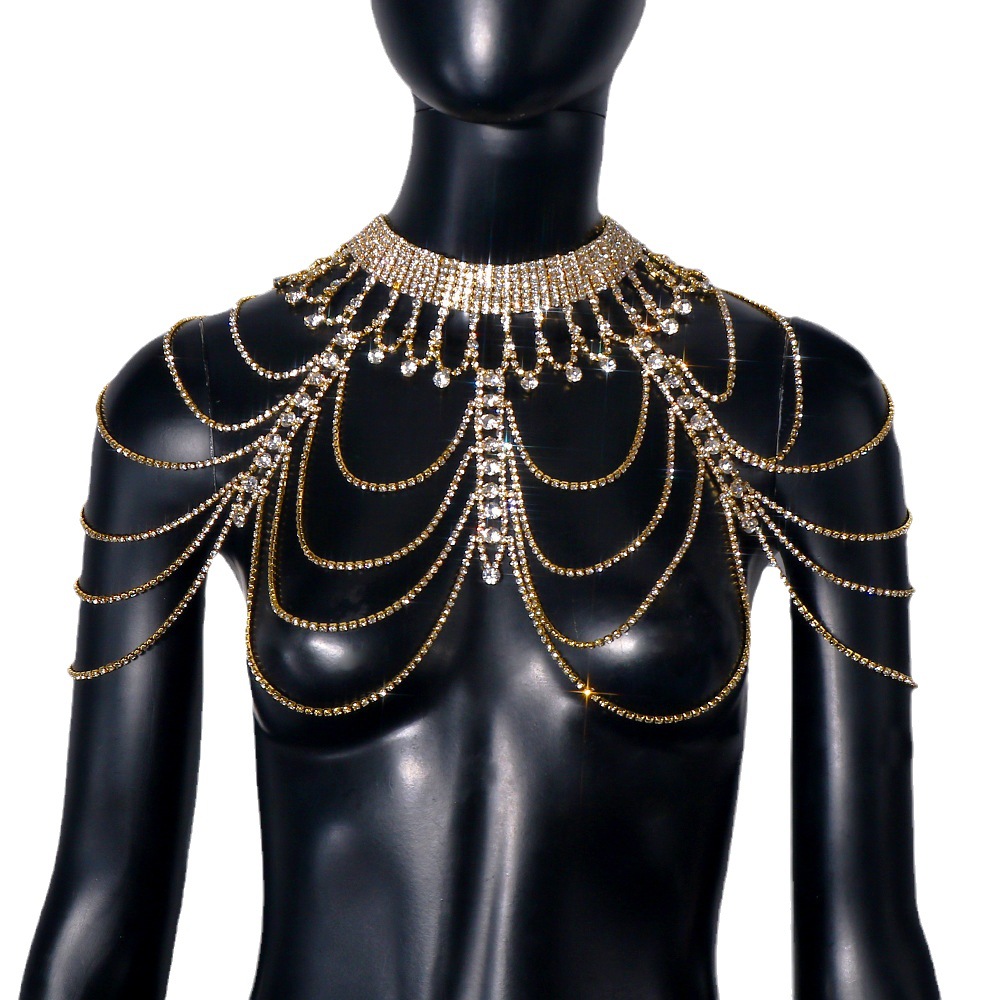 Cross-border hot selling rhinestone shoulder chain European and American exaggerated full diamond multi-layer tassel back chain body chain accessories chain