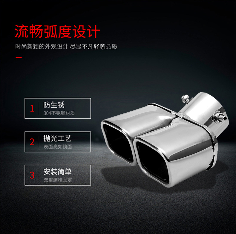 | nameOriginal | Cross-border hot-selling square mouth double-row curved double-row straight car tail throat thickened stainless steel exhaust pipe tail throat double pipe |