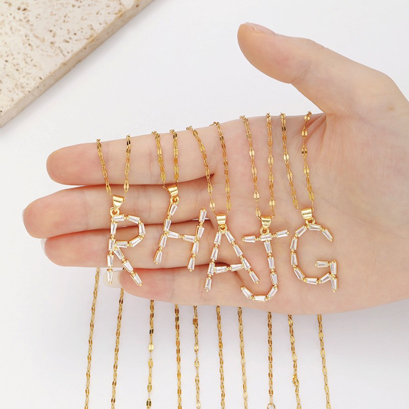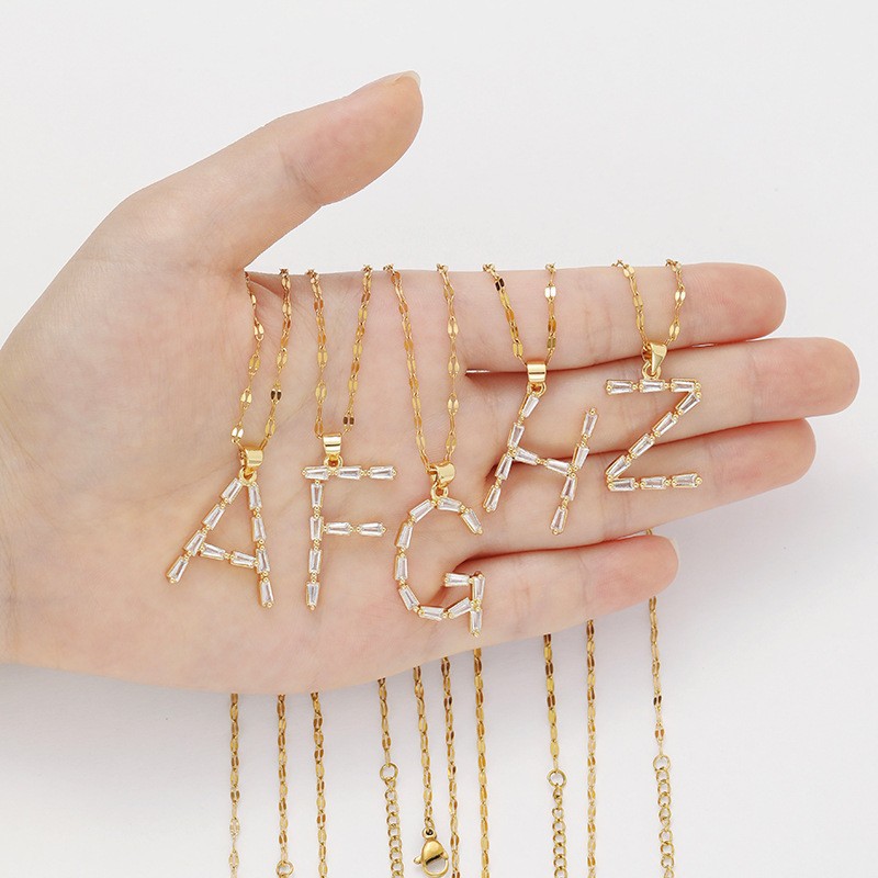 | nameOriginal | Cross-border hot selling T square bamboo letters new copper inlaid zircon 26 English letters pendant necklace clavicle chain women |
