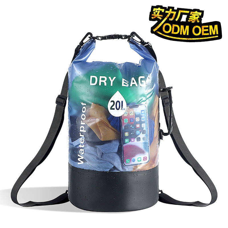 Cross-border Hot-selling Waterproof Bucket Bag 10L20L Translucent Large Capacity Tracing Stream Swimming Camping PVC Outdoor Waterproof Bag