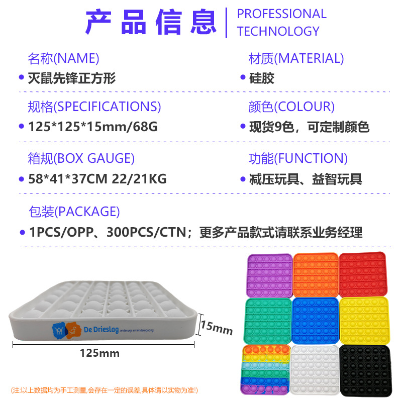 | nameOriginal | Cross-border in stock 12.5cm medium parent-child interactive puzzle decompression pop silicone toy square rat pioneer |