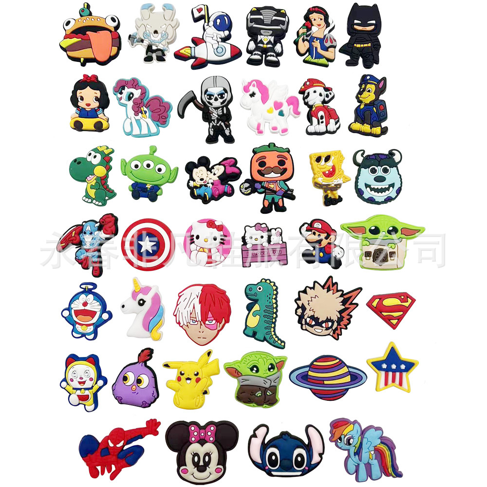 | nameOriginal | Cross-border in stock 40PCs suit shoe flower shoe buckle hole shoe bag bracelet decoration accessories mixed cartoon PVC |