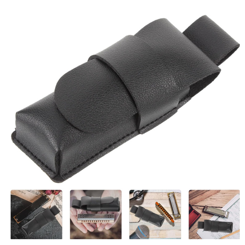 Cross-border in stock blues harmonica bag PU leather harmonica protective leather case single musical instrument harmonica leather case