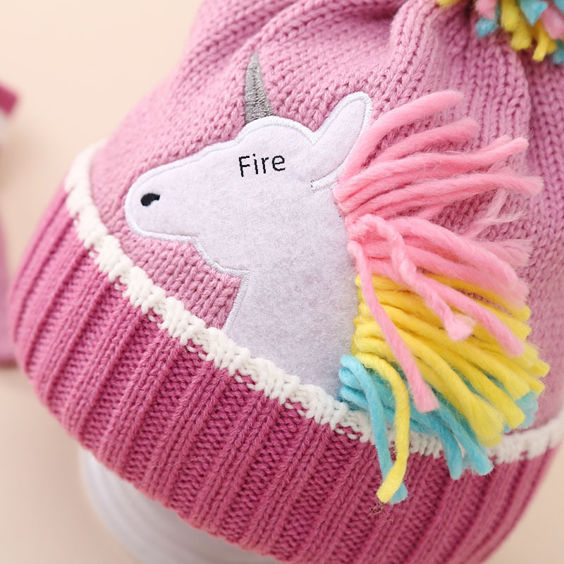 Cross-border in Stock children’s cartoon unicorn knitted hat gloves two-piece Winter girls’ warm wool hat suit