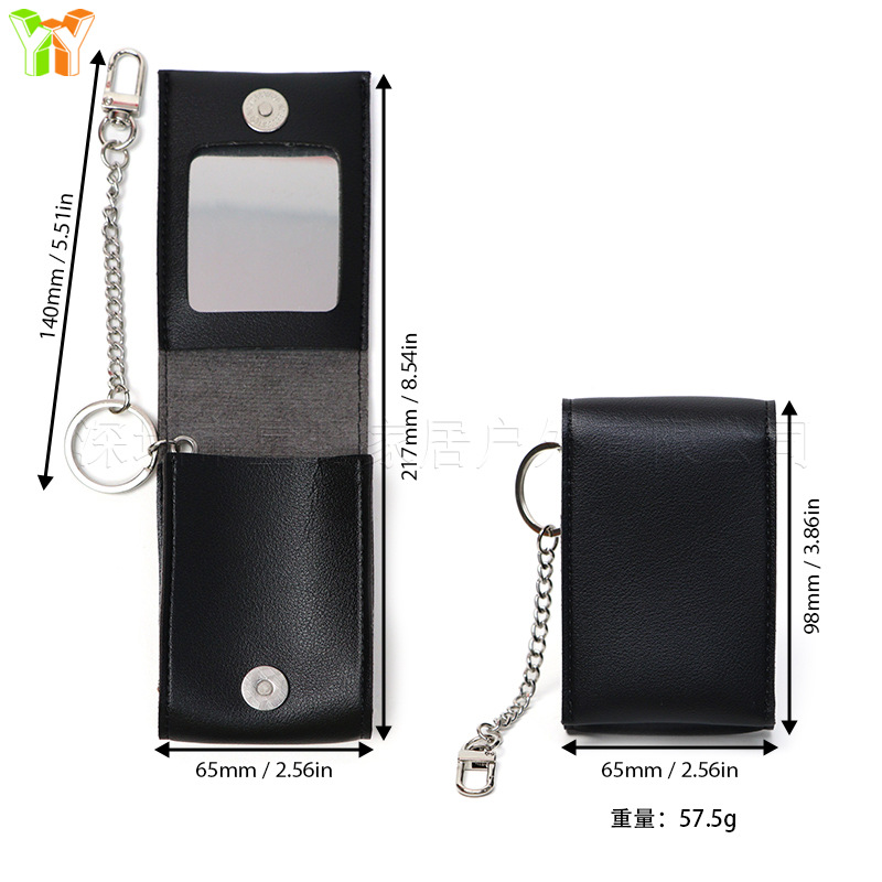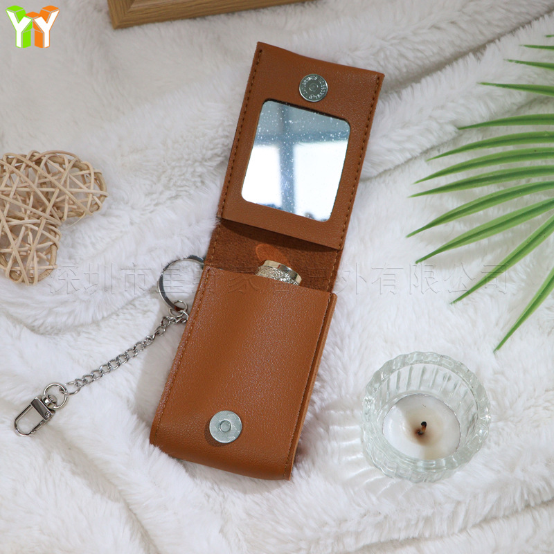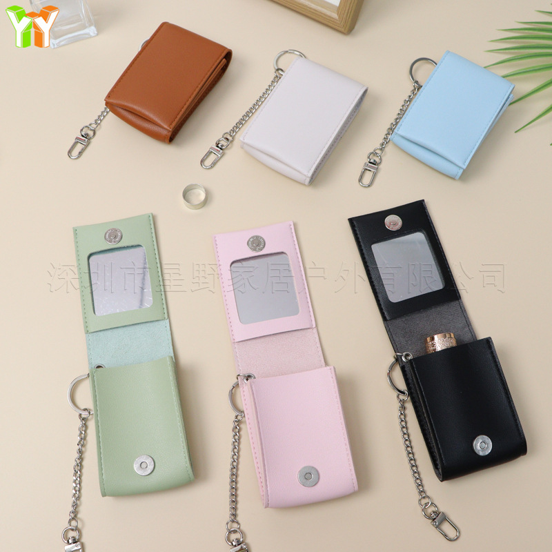Cross-border in stock Leather Mouth Red Envelope Travel Women’s Makeup Mirror Leather Cover Lip Glaze Lipstick Lipstick Cover with Chain Hanging Buckle