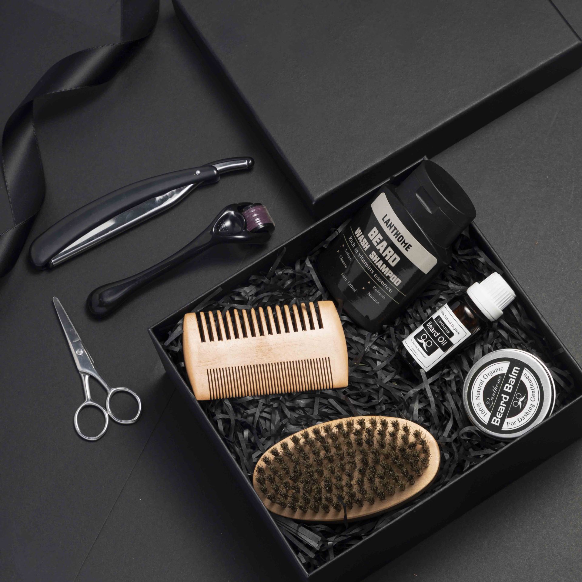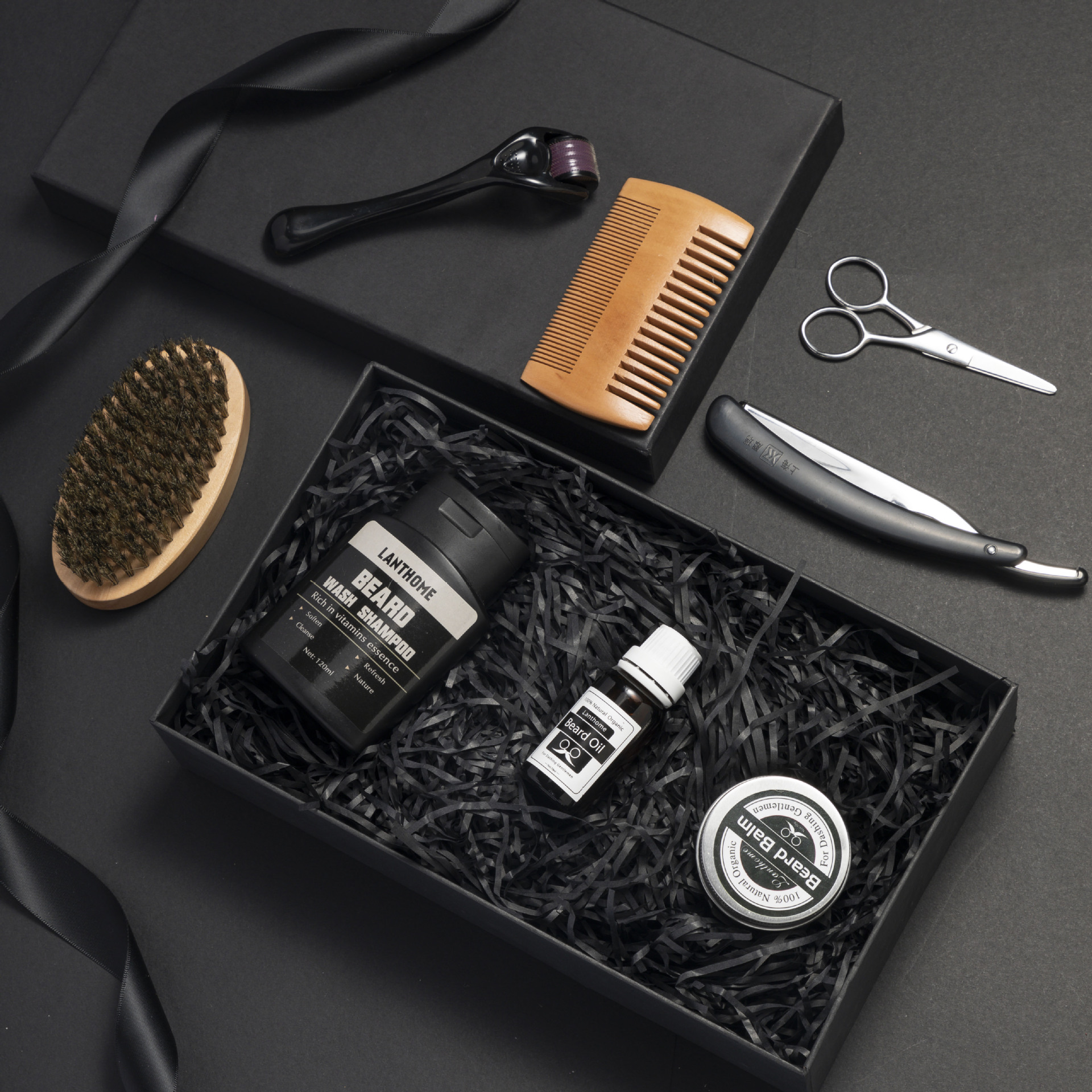 Cross-border in stock men's beard care box Beard suit beard cream beard oil brush sack scissors 11-piece set