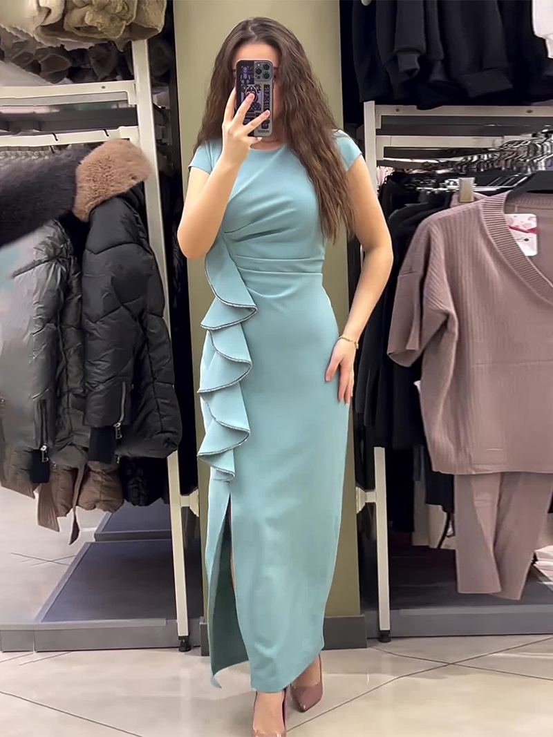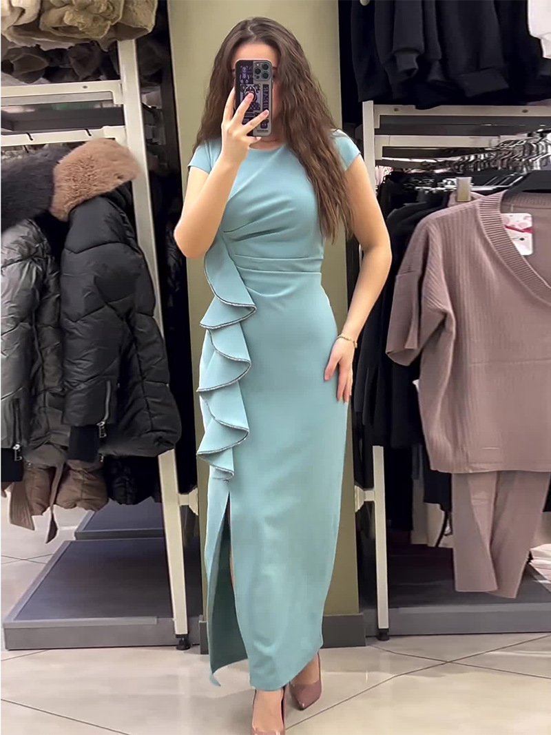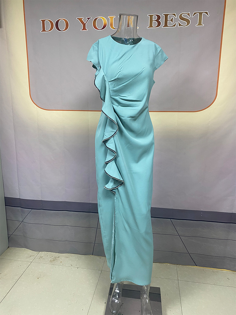 | nameOriginal | Cross-border independent station Amazon 2023 European and American autumn new solid color short sleeve split slim fit dress sexy |