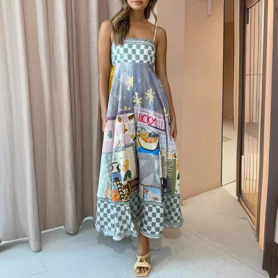 | nameOriginal | Cross-border independent station Amazon European and American foreign trade 2023 new summer sexy printed large pendulum suspender dress for women |