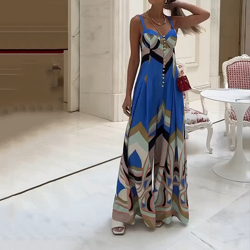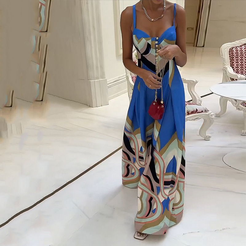 | nameOriginal | Cross-border independent station fashion European and American women's 2024 new sexy sling loose printed button jumpsuit |