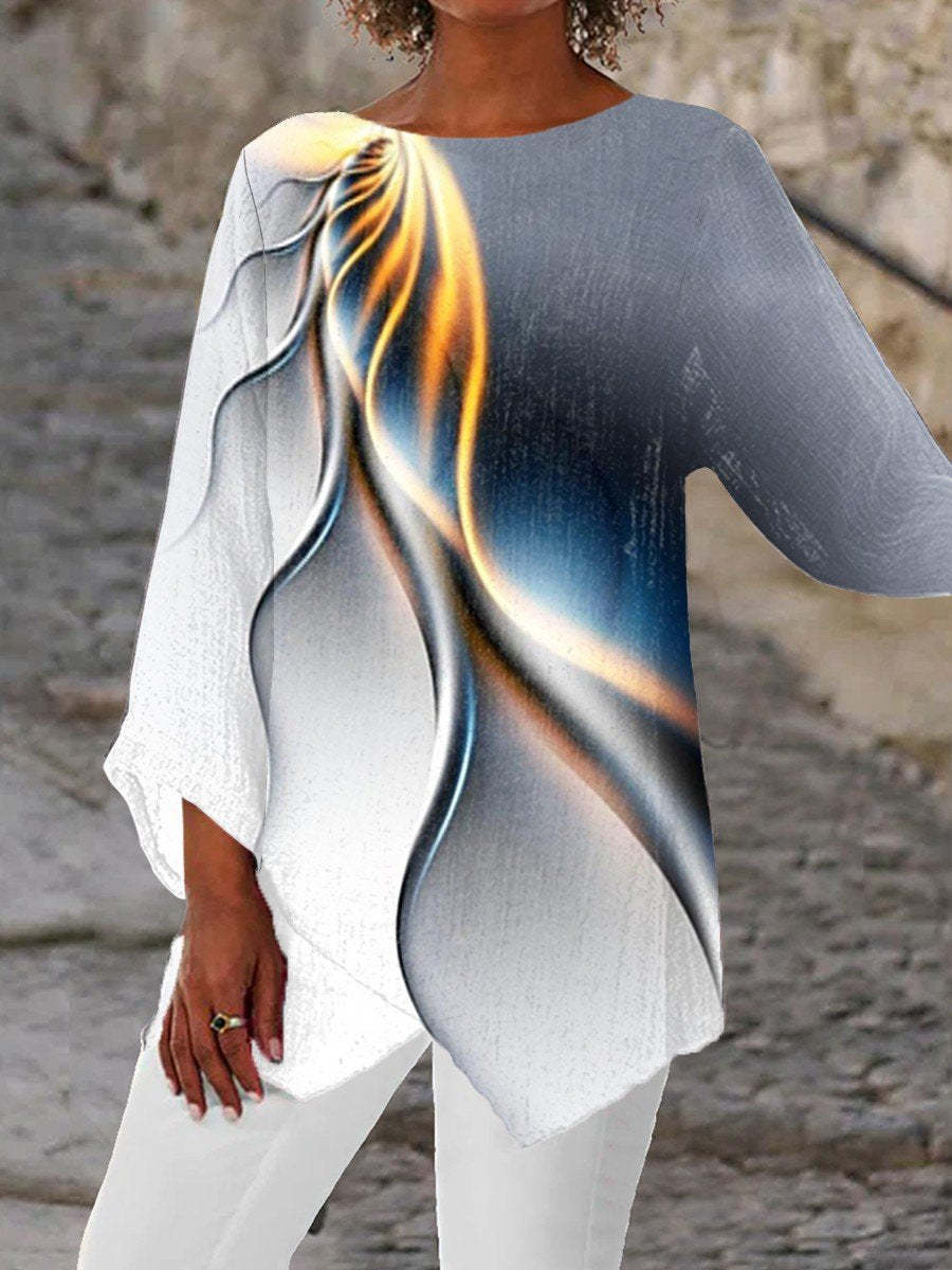 | nameOriginal | Cross-border independent station new women's European and American 3D printing marble texture crew neck nine sleeve loose T-shirt |