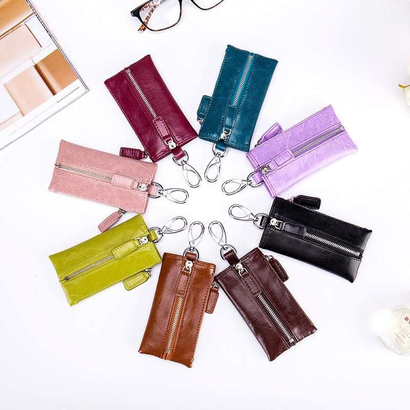 Cross-border Japan Multi-function Key Bag Genuine Leather Men’s Zipper Retro Coin Purse Women’s Car Key Bag
