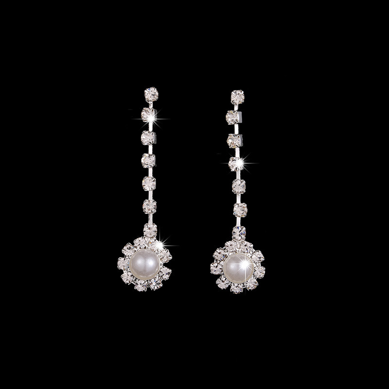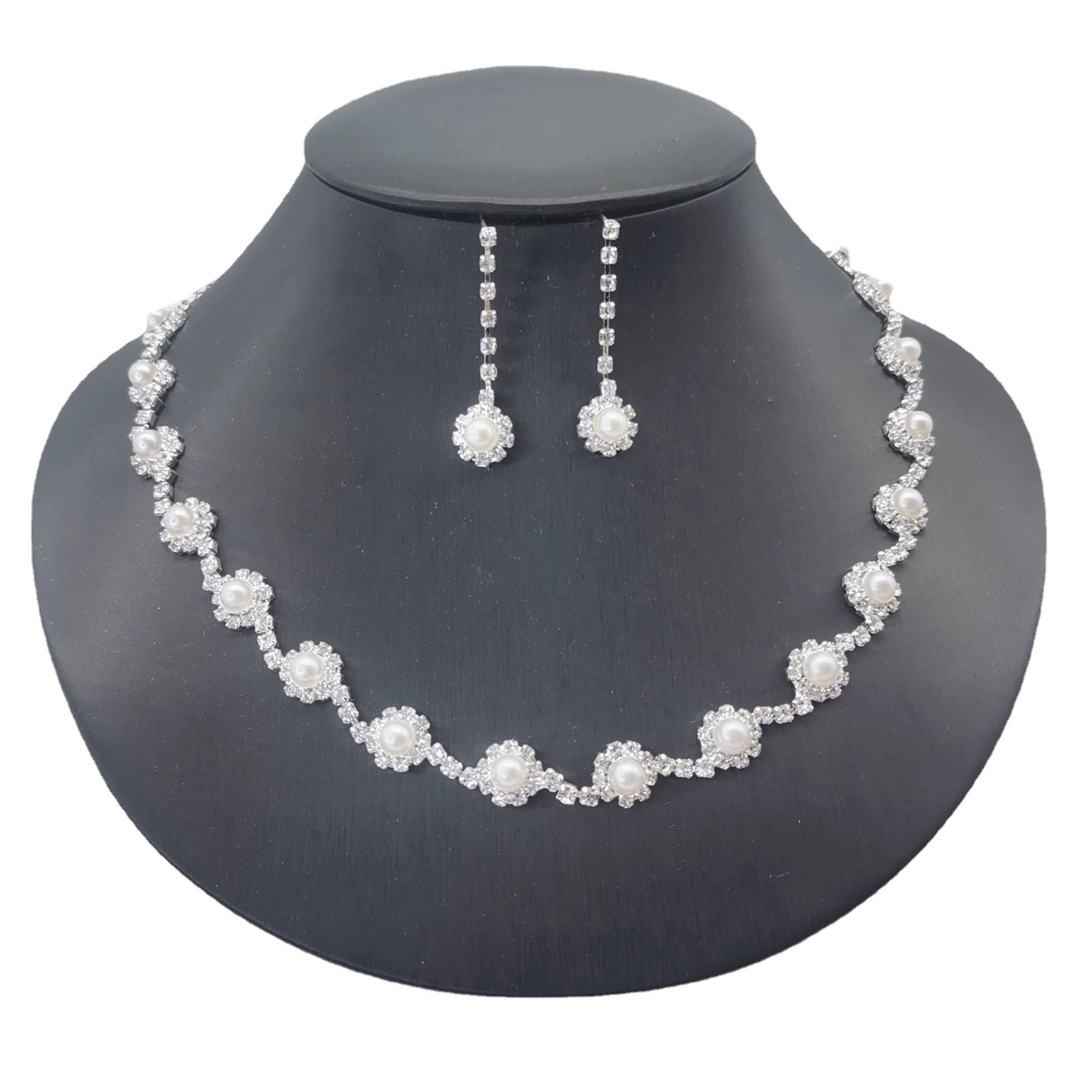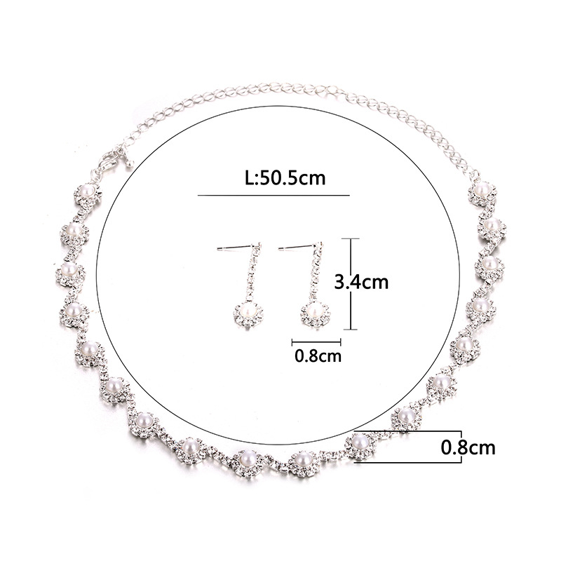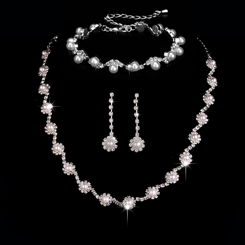 Cross-border Jewelry Set New Hot Simple Claw Chain Water Diamond Set Pearl Bridal Necklace Earrings Three-piece Set