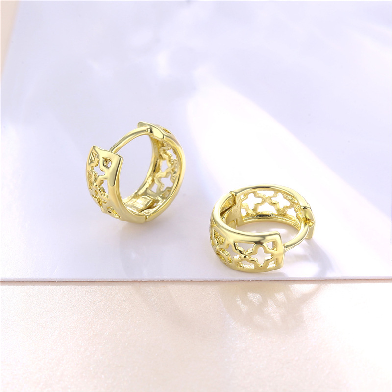 | nameOriginal | Cross-border jewelry supply copper gold-plated four-leaf clover ear ring Korean fashion four-leaf clover ear buckle hollow simple earrings |
