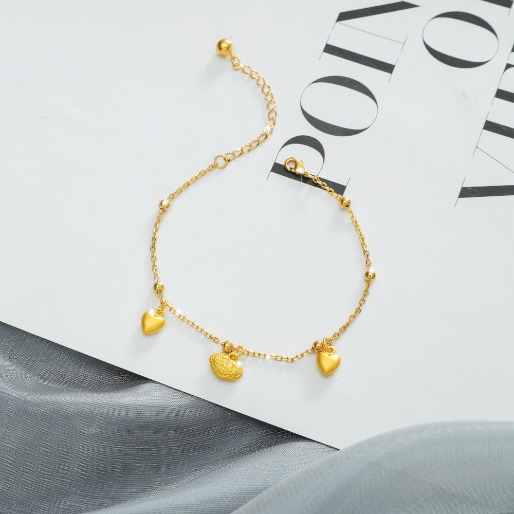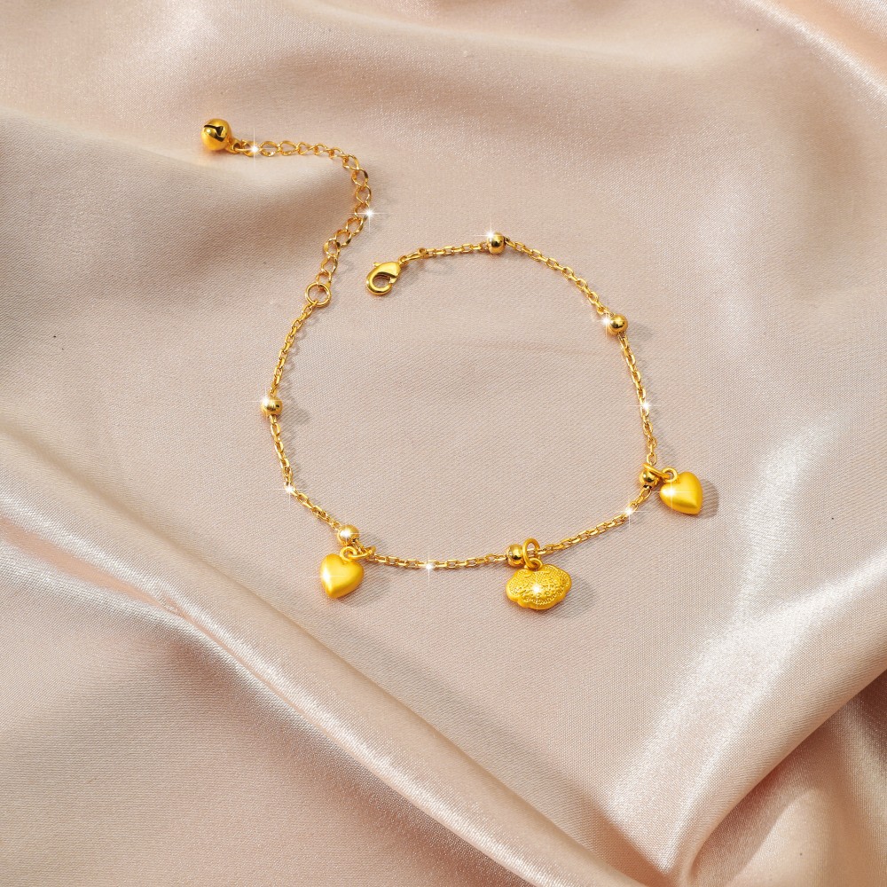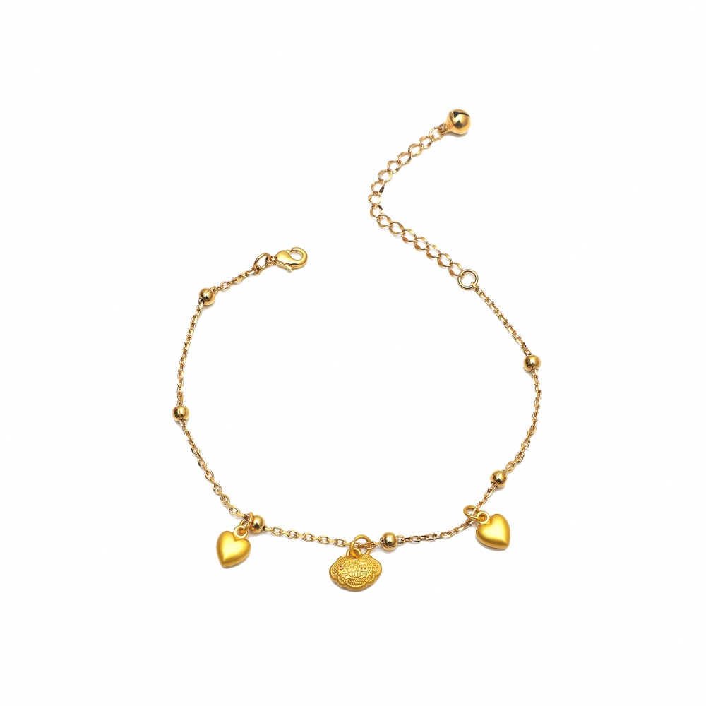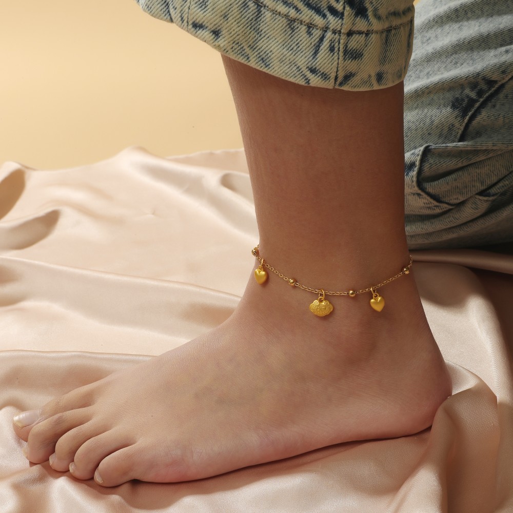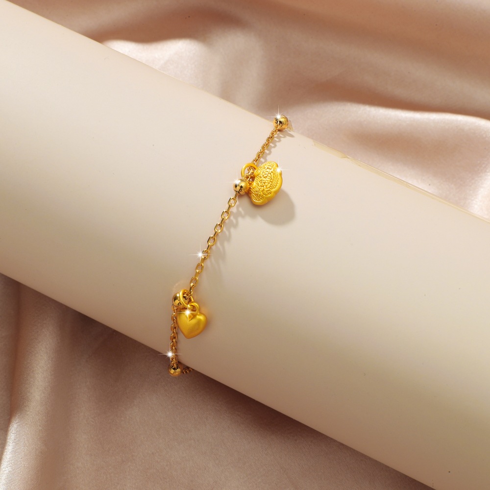 Cross-border Korean version of copper plated gold simple 0-word chain long life lock double love anklet for a long time does not fade foot decoration wholesale