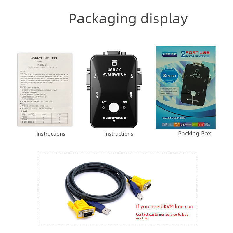 | nameOriginal | Cross-border KVM switcher VGA2 port one drag two host keyboard mouse sharing Sharer synchronization usb |