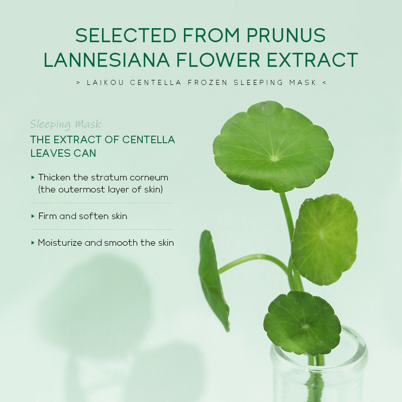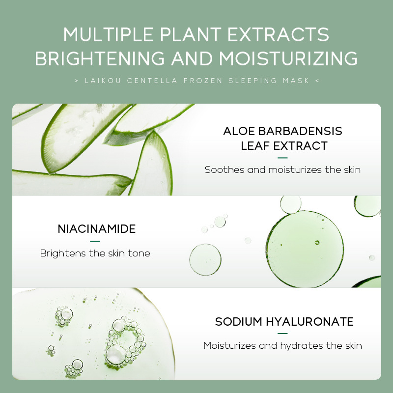 | nameOriginal | Cross-border LAIKOU Centella asiatica Frozen film 100g coating sleep mask hydrating moisturizing cleaning mud film wholesale |