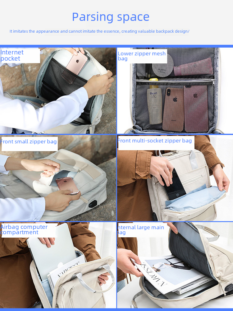 Cross-Border Laptop Backpack with usb charging port waterproof compact business simple student backpack
