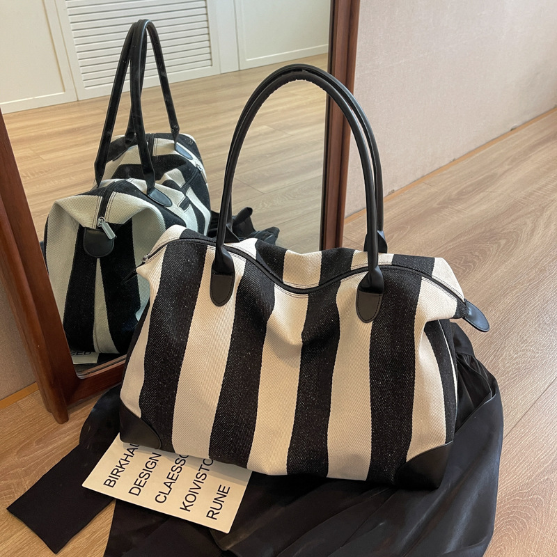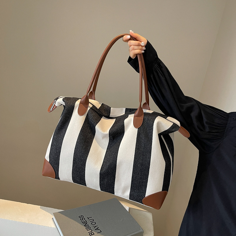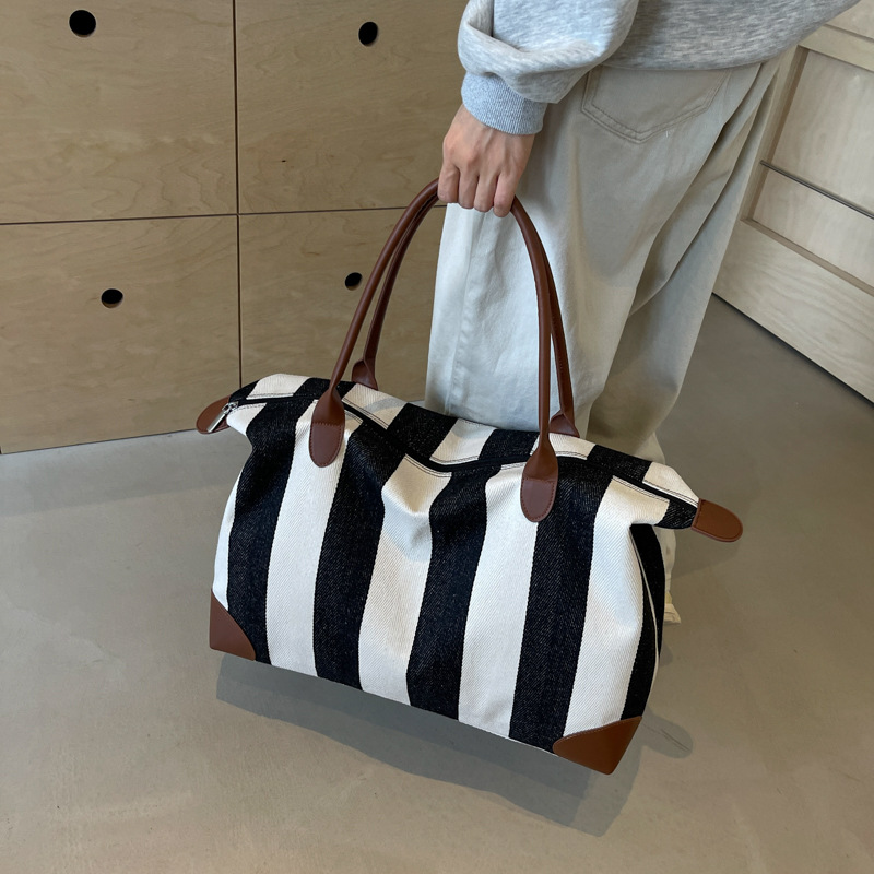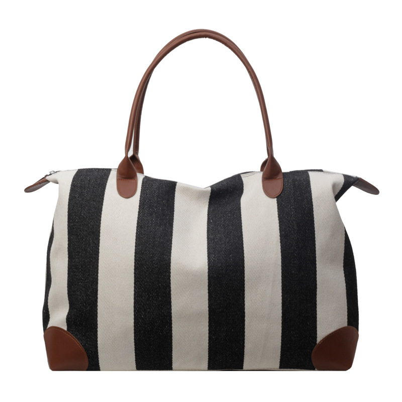 | nameOriginal | Cross-border Large Capacity Portable Fitness Bag Women's 2024 Striped New Arrival Canvas Travel Bag Simple Shoulder Tote Bag |