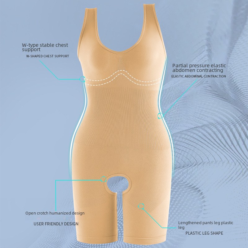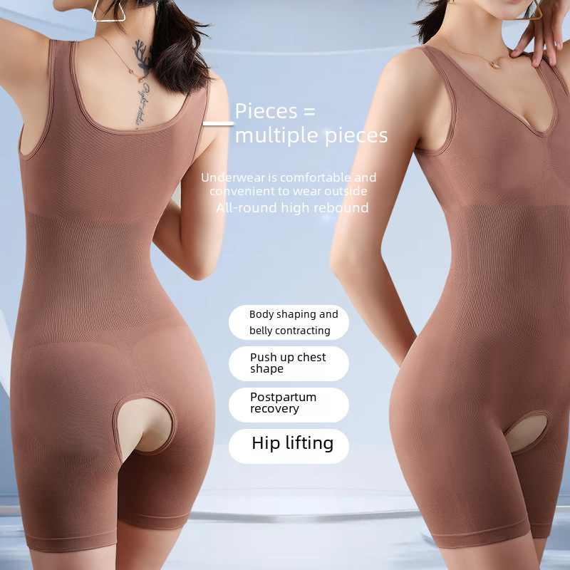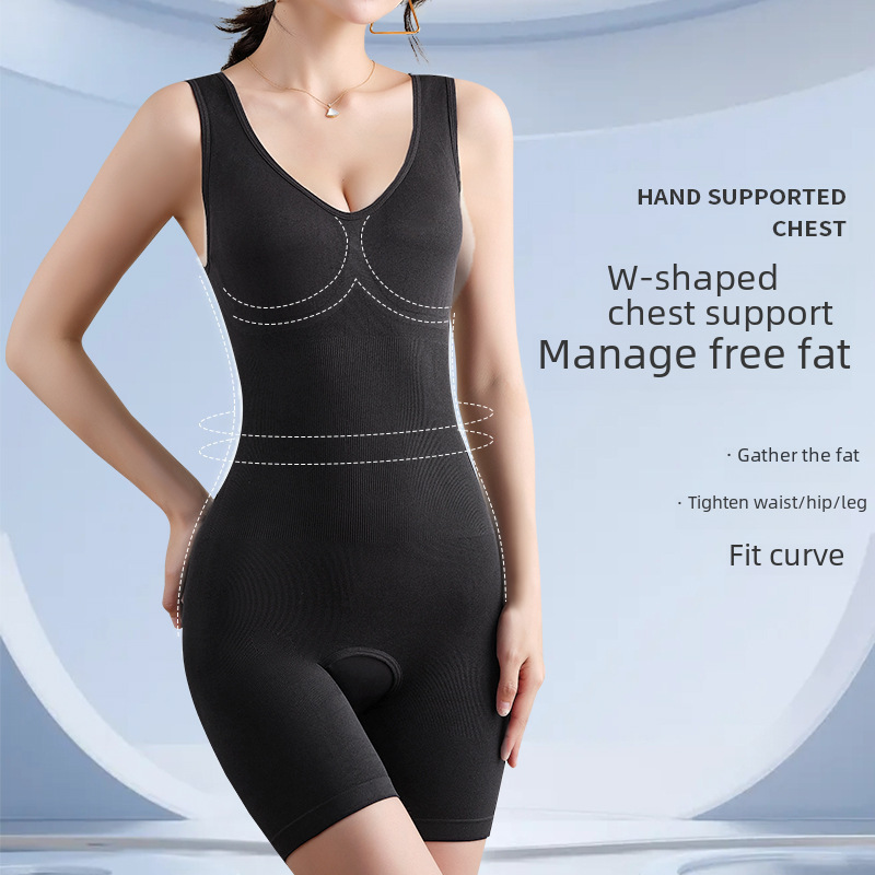 Cross-Border Large-Size Body-Shaping Jumpsuit Belly-Tighting Body-Tucking Body-Tucking Suit Chest Gathered-Tucking Jacket Open-Range Tucking Pants
