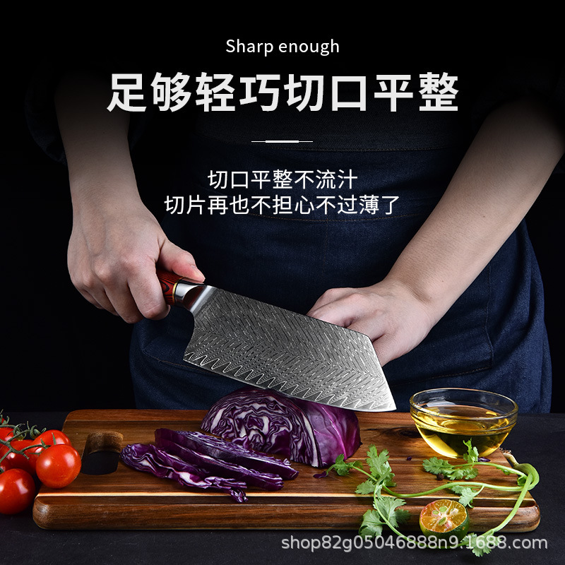 | nameOriginal | Cross Border Layer Damascus Steel Core Slicing Knife Household Chinese Style Kitchen Knife Sharp Kitchen Chef Knife |