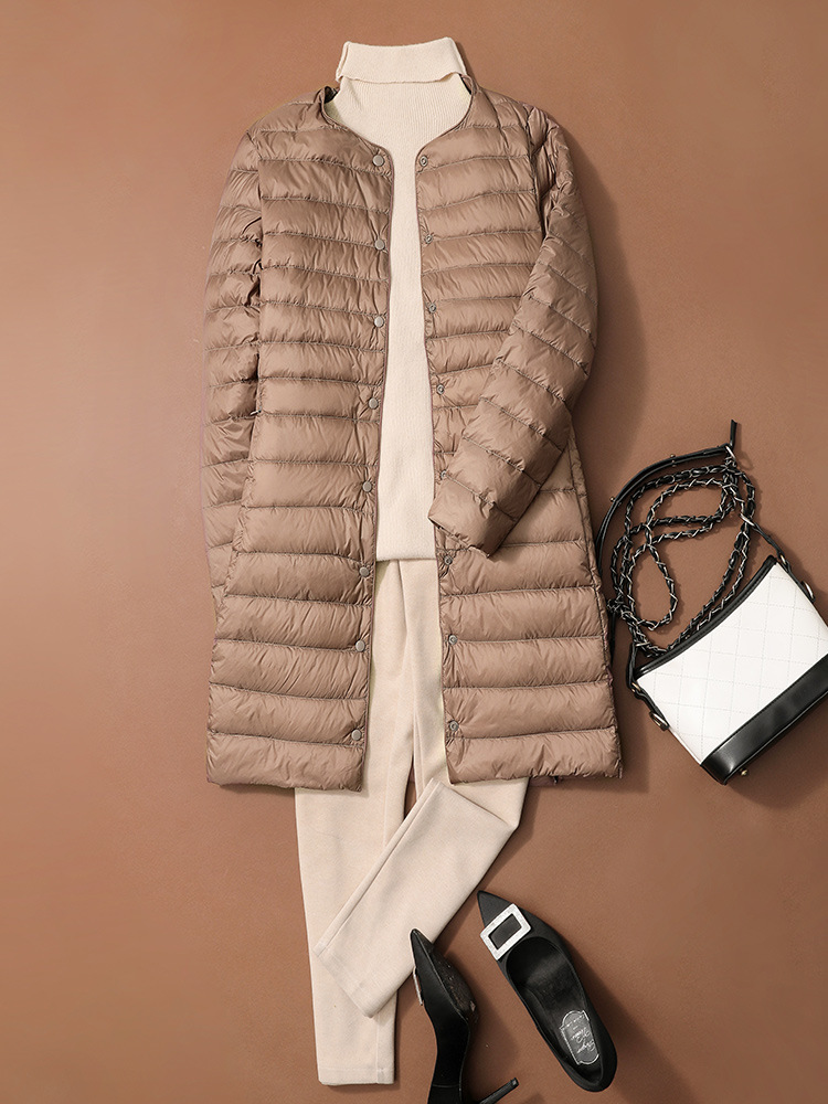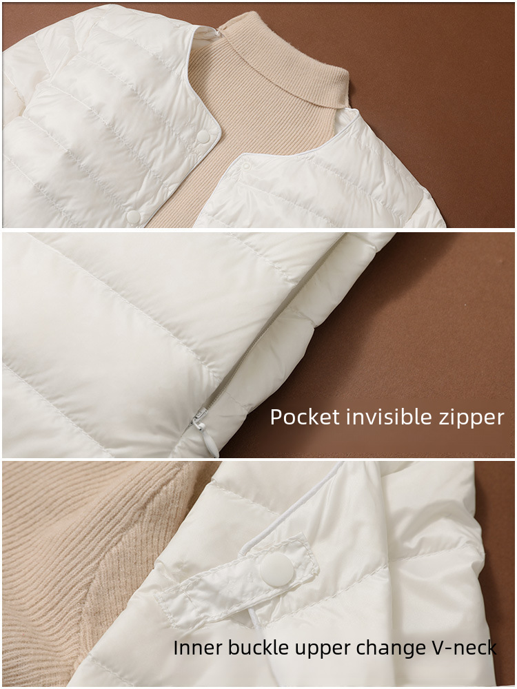 | nameOriginal | Cross-border lightweight down jacket Women's Mid-length autumn and winter New round neck long coat collarless variable V-neck liner |