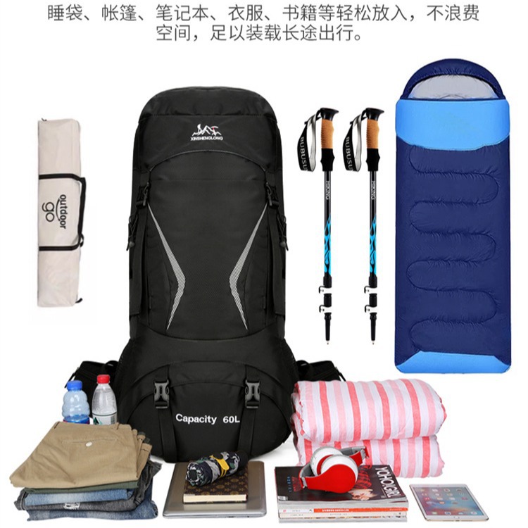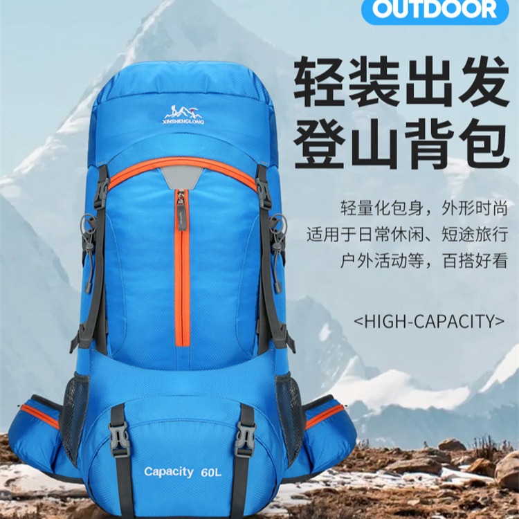 | nameOriginal | Cross-border luminous backpack outdoor sports mountaineering bag 60L large capacity nylon travel bag camping hiking backpack |