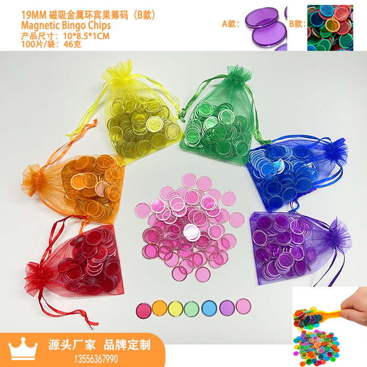 Cross Border Magnetic Bingo Wand Plastic Chips Colorful Iron Ring Round Piece Bingo Coin Toy Chip BINGO