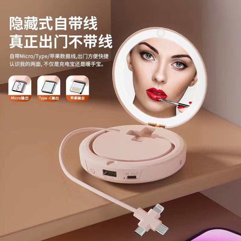 Cross-border makeup mirror hand warmer charging treasure LED lamp 4 in 1 creative mini gift magic mirror hand warmer charging treasure
