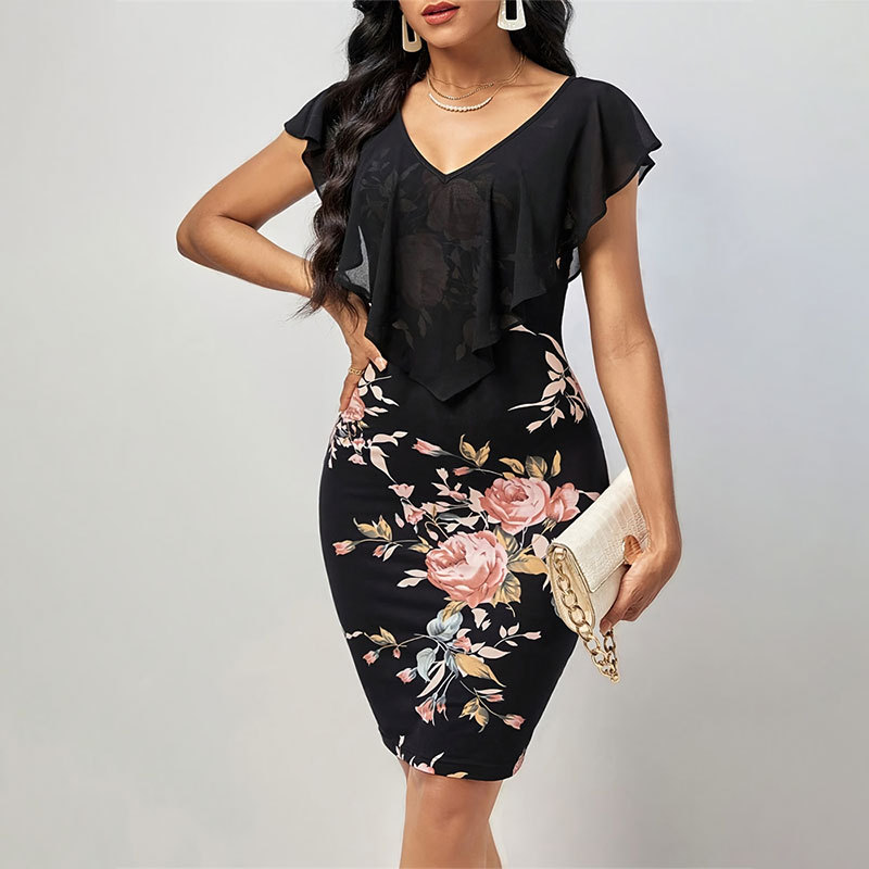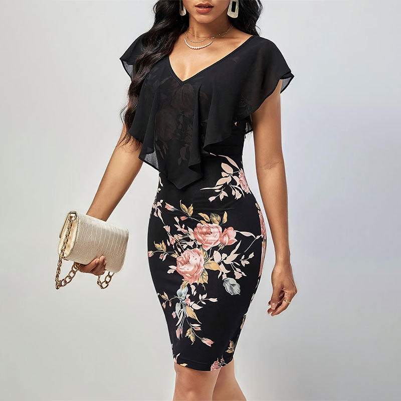 | nameOriginal | Cross-border mesh stitching V-neck sleeveless dress temperament slim sexy hip skirt foreign trade women's skirt wholesale |