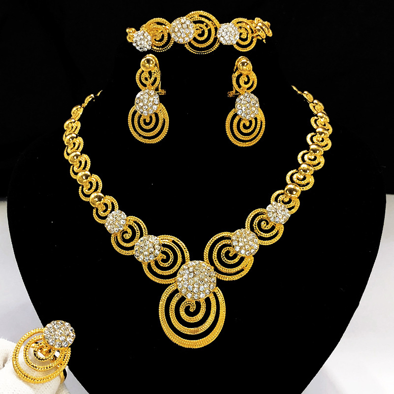 | nameOriginal | Cross-border Middle East Dubai Women's Alloy Necklace Earrings Ring Bracelet Wedding Jewelry Four-piece Jewelry Set |