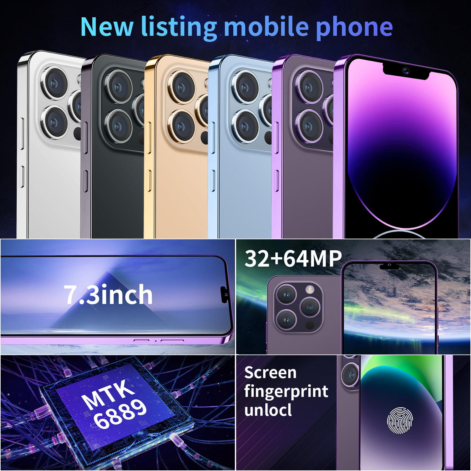 Cross-border mobile phone i14pro max smart Android mobile phone 7.3 inch 5G foreign trade mobile phone in stock a generation of hair