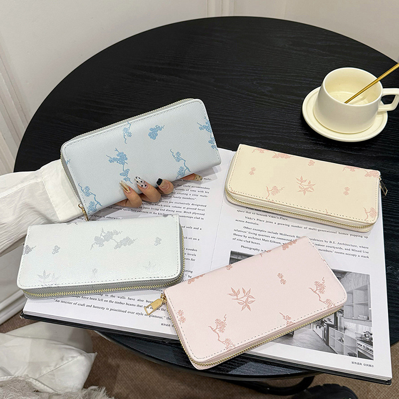 Cross-border New 2024 Indented Plum Blossom Design Multi Card for Women Long Wallet Large Capacity Zipper Clutch Card