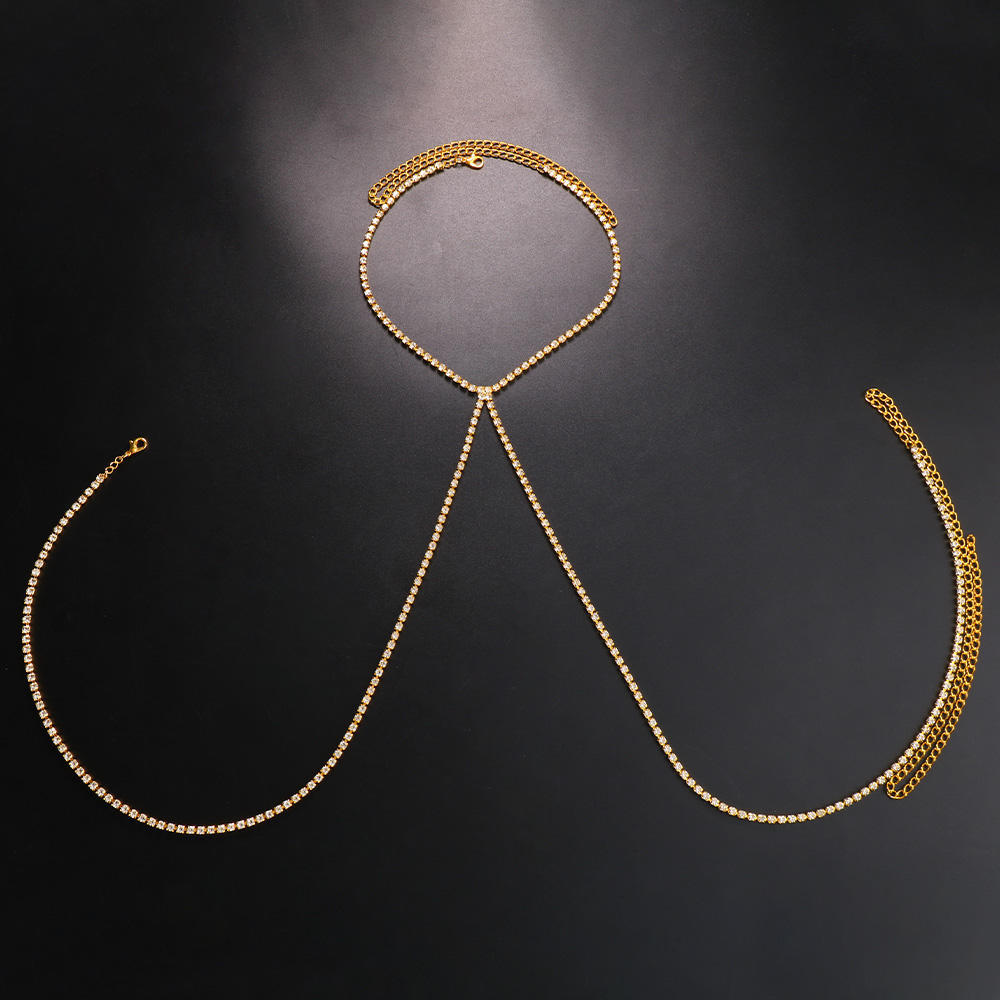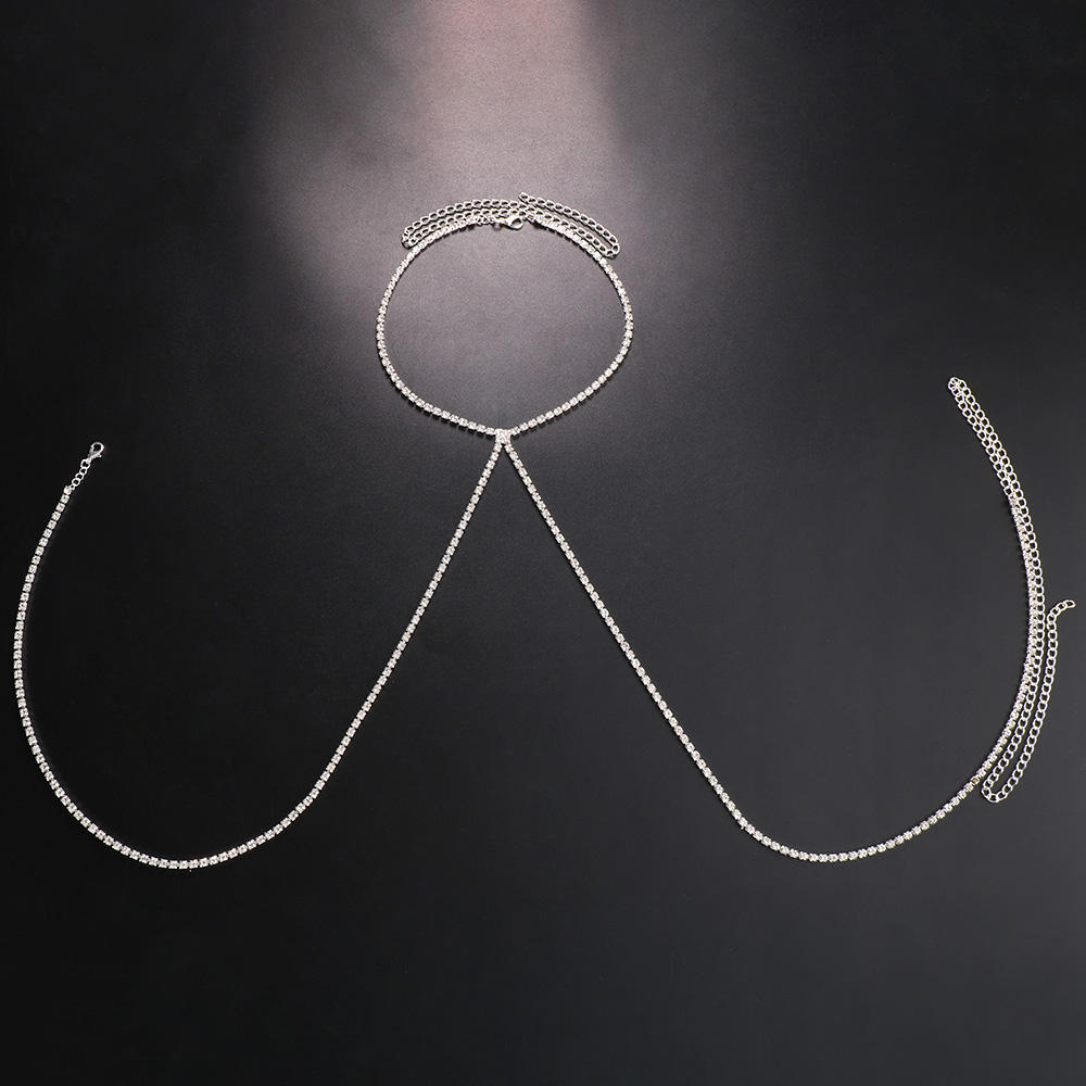 | nameOriginal | Cross-border New Accessories Fashion Simple Neck Rhinestone Chest chain European and American Sexy body chain for Women |