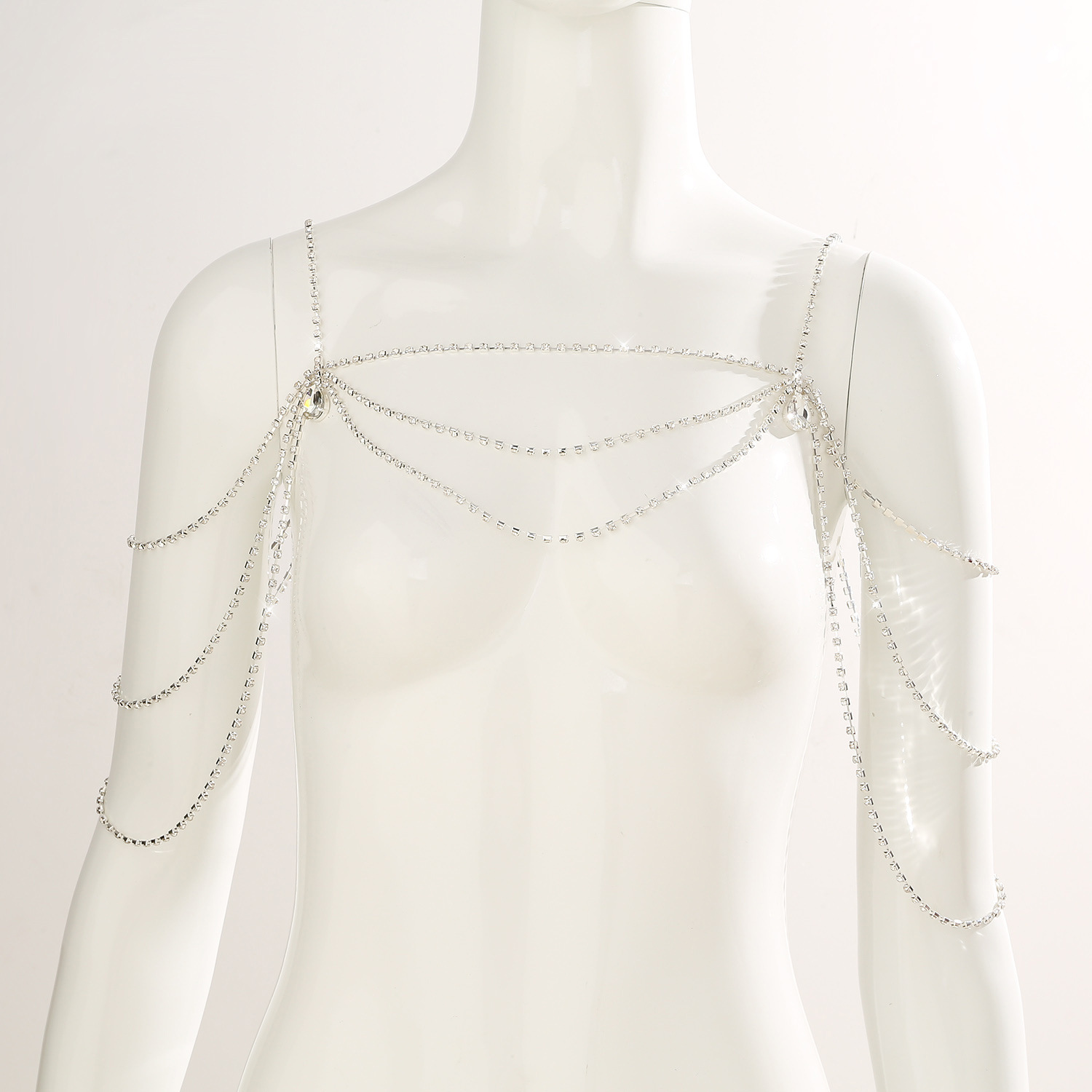 Cross-border new accessories rhinestone shoulder chain sexy tassel multi-layer elegant clavicle chain rhinestone body chain accessories for women