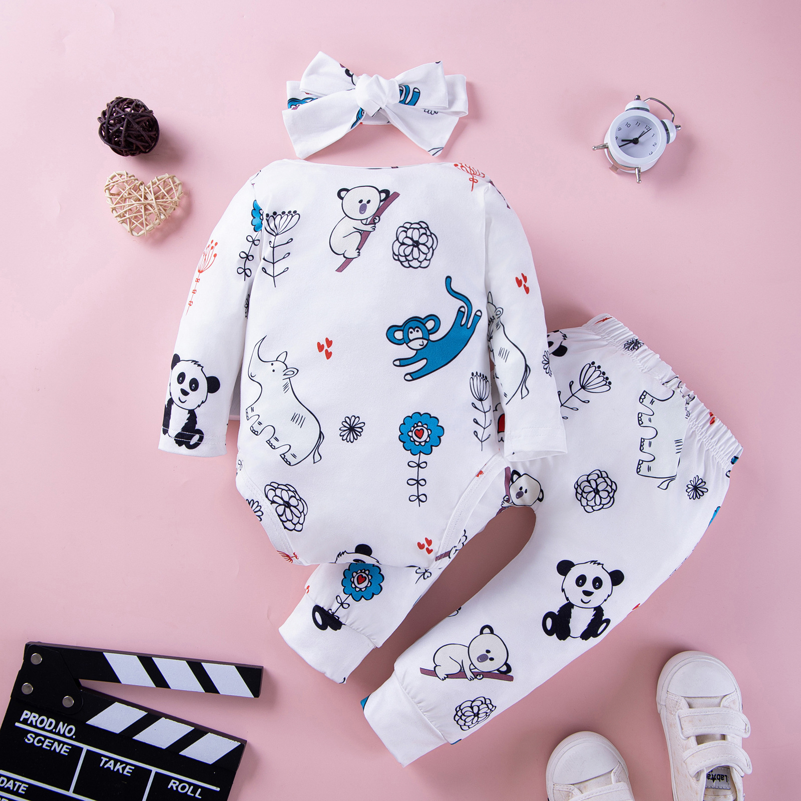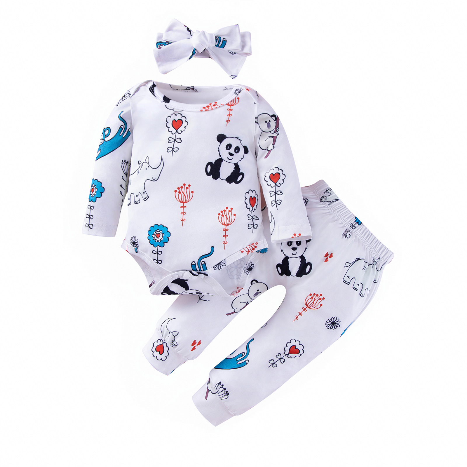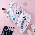 Cross-border new baby boy animal printed long sleeve triangle jumpsuit + headband pants three-piece set