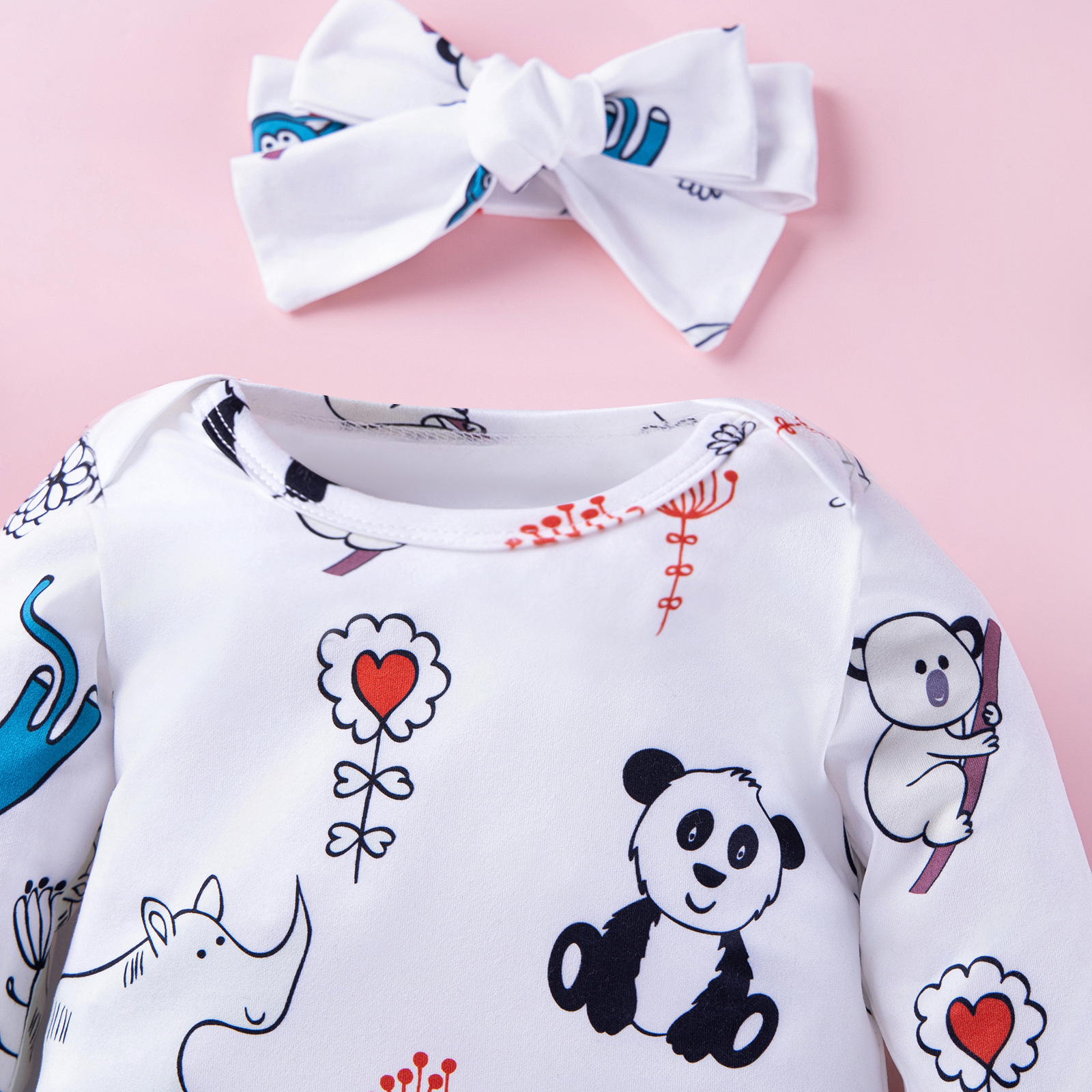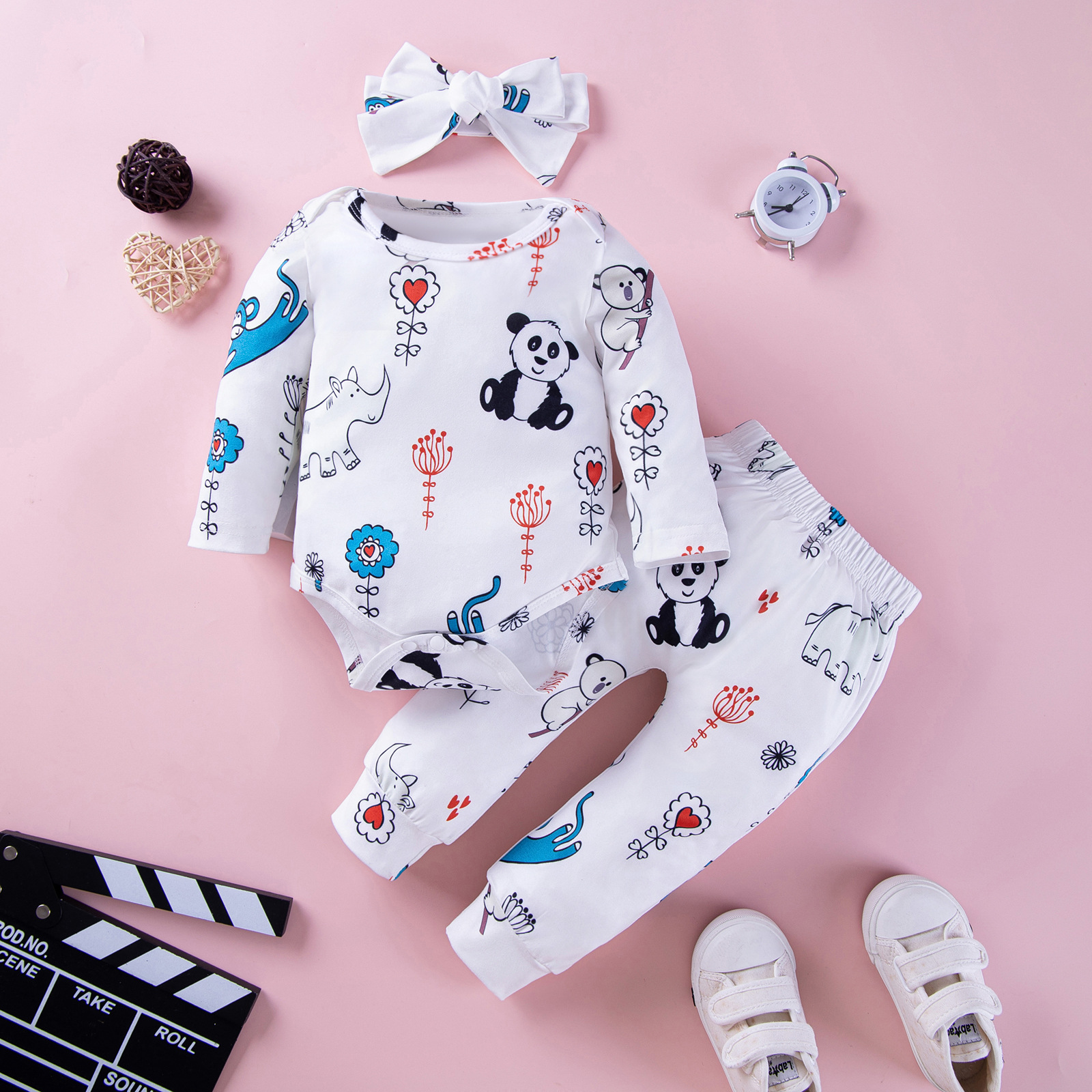 Cross-border new baby boy animal printed long sleeve triangle jumpsuit + headband pants three-piece set