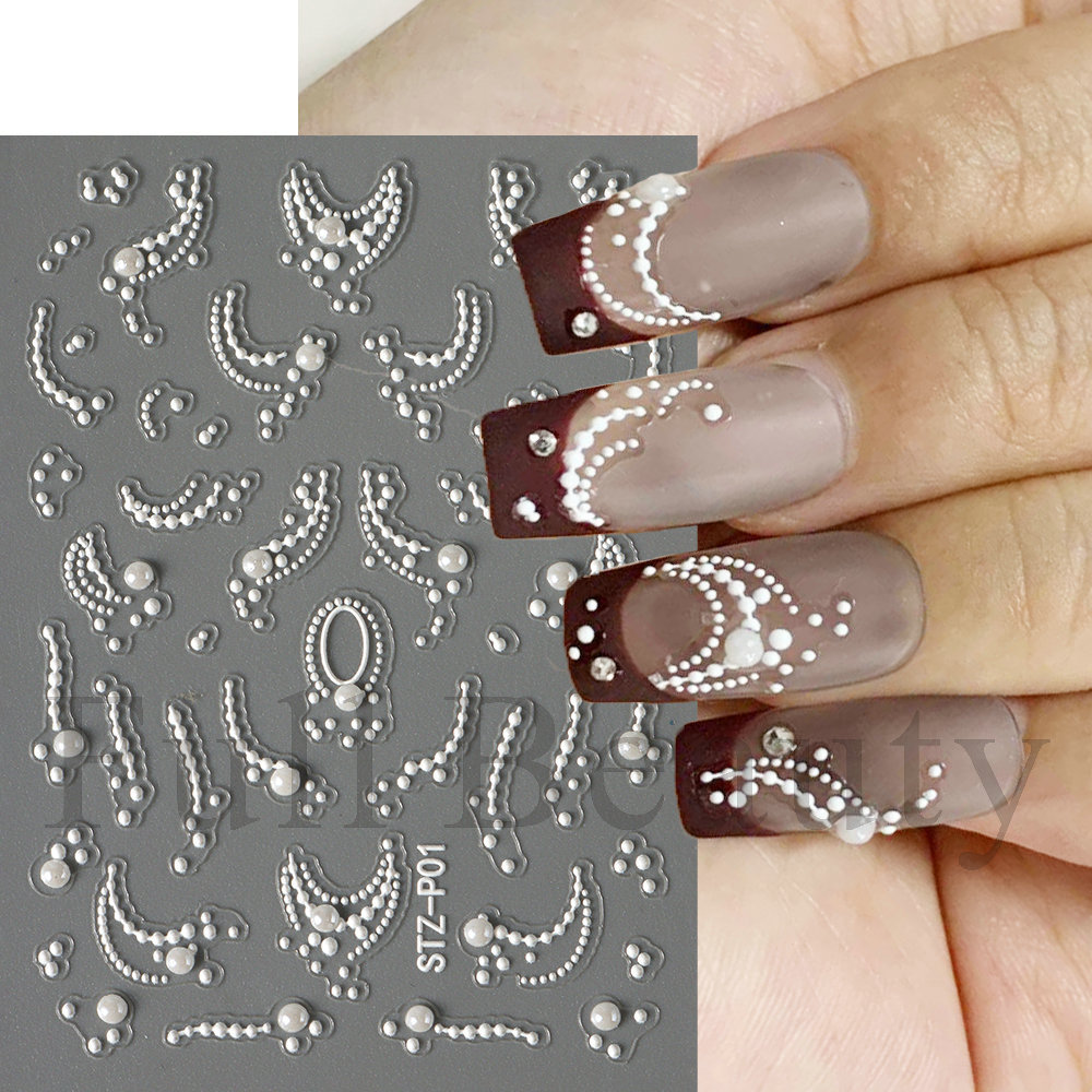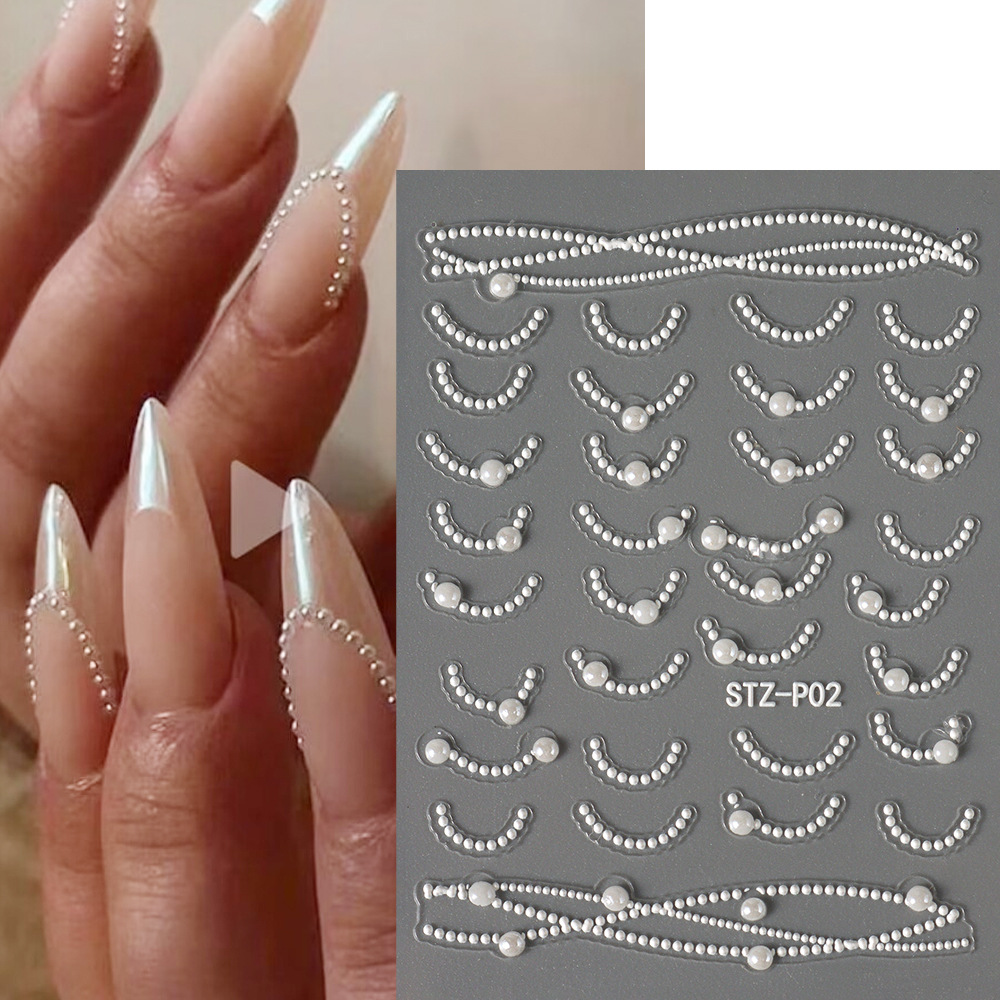 | nameOriginal | Cross-border new craft nail stickers wholesale ins relief three-dimensional 5D high-level pearl French stickers nail stickers |