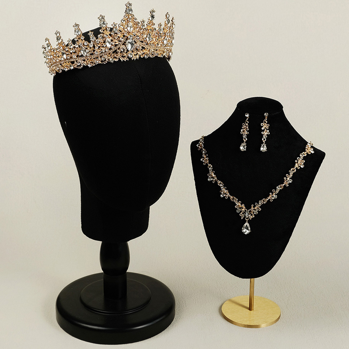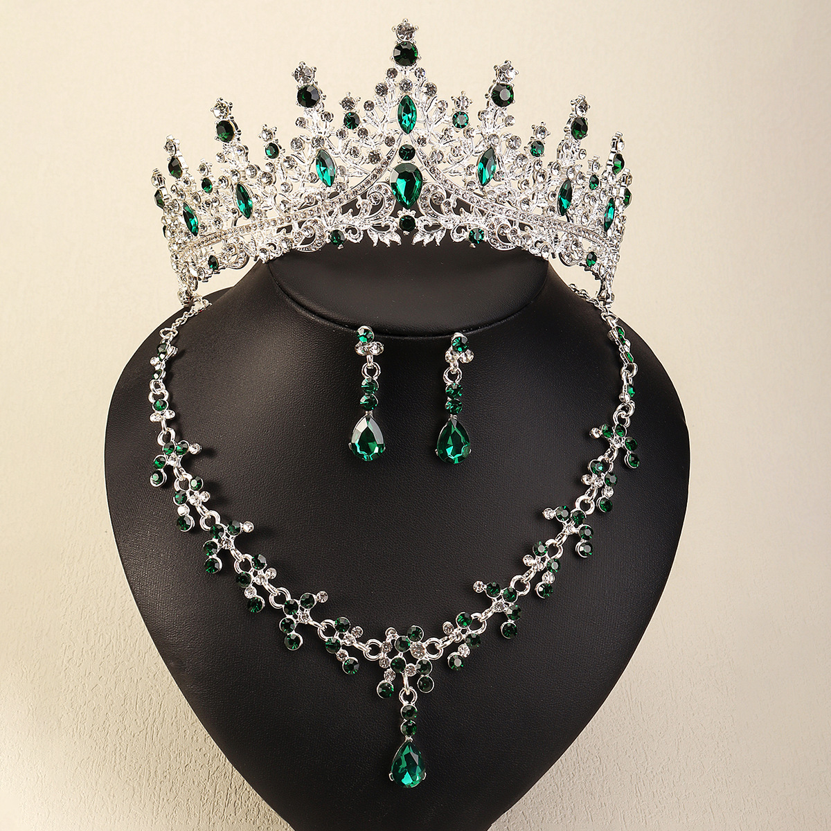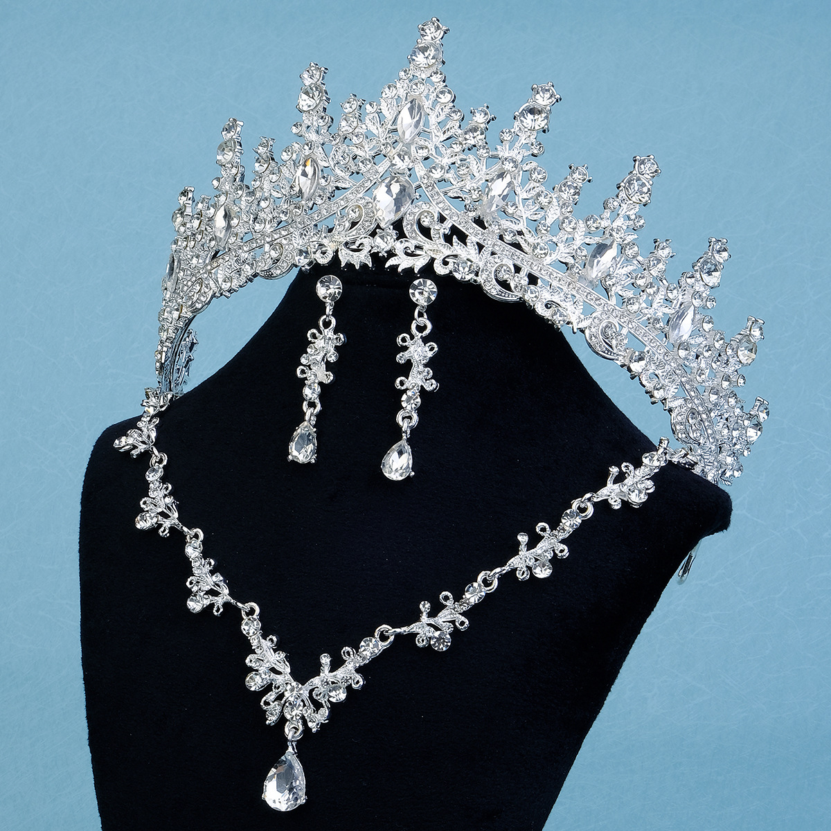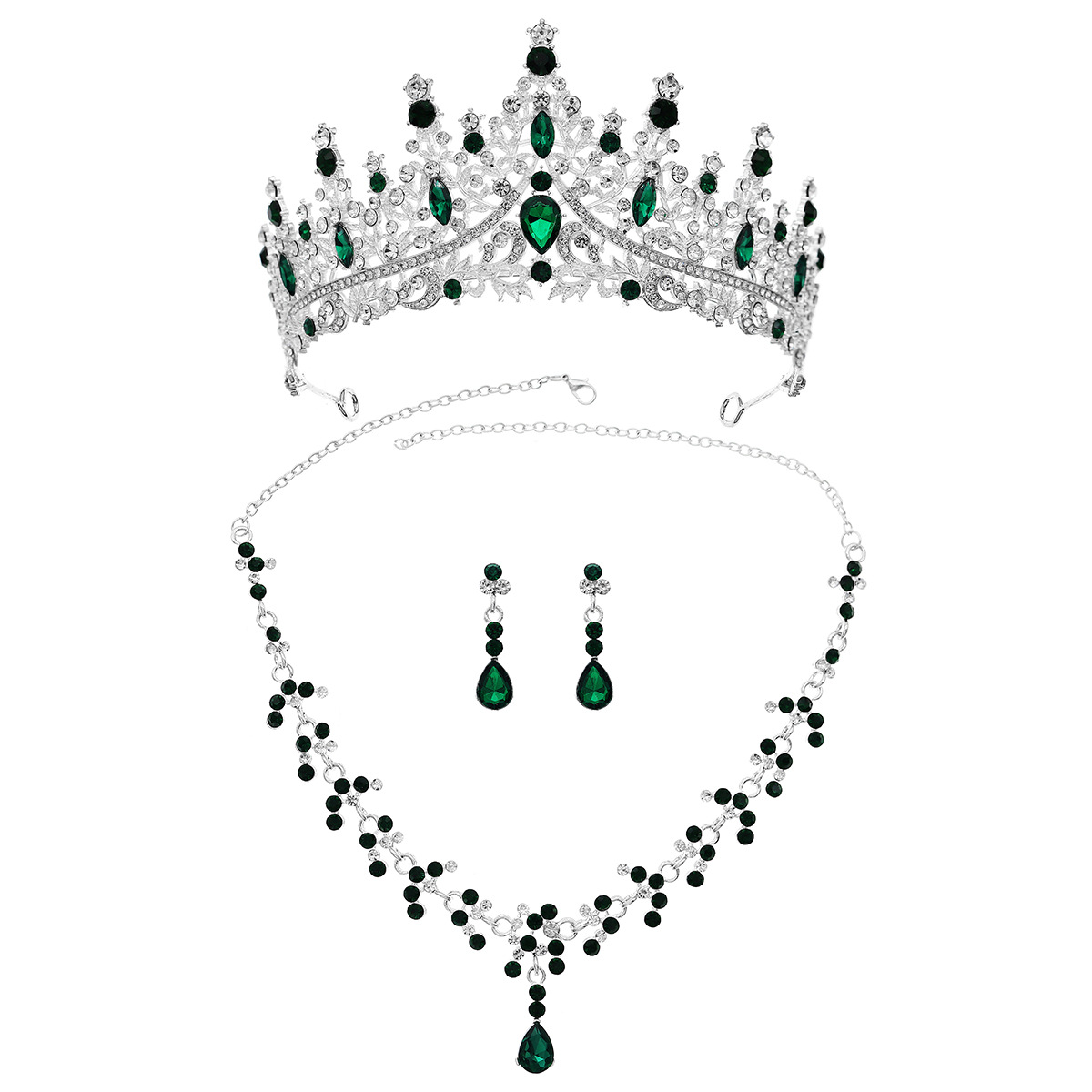 | nameOriginal | Cross-border new crown necklace earrings luxury all-match wedding banquet jewelry alloy rhinestone bridal crown suit |
