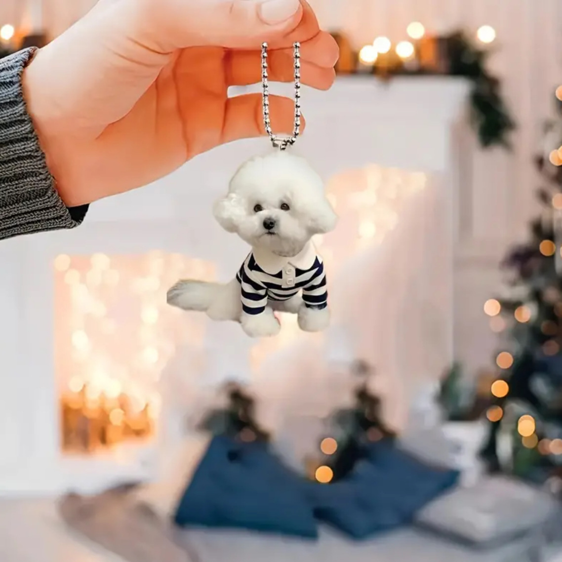 | nameOriginal | Cross-border new cute puppy black and white striped clothes car rearview mirror decoration pendant key chain pendant festival |