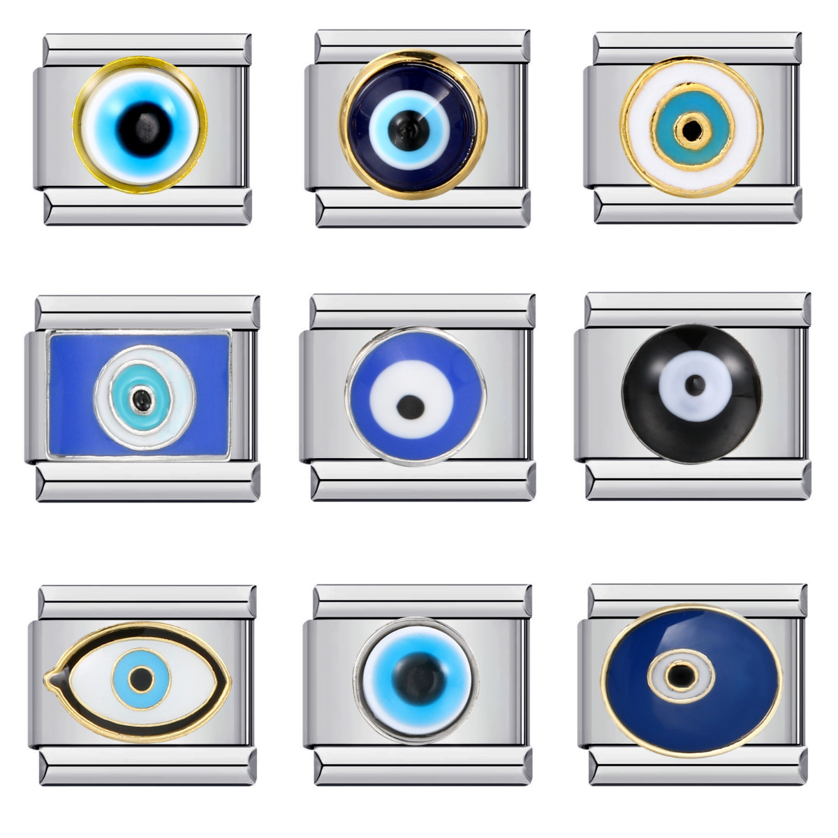 Cross-border New Devil’s Eye Italian Module Bracelet Titanium Steel Welding Oil Dropping Cartoon DIY Elastic Bracelet