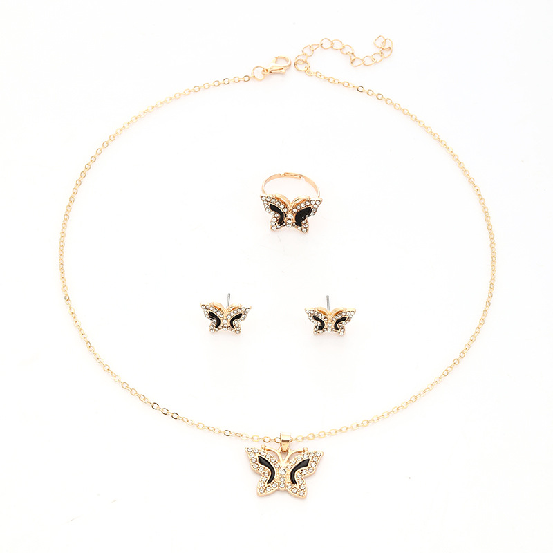 Cross-border New Diamond Butterfly Necklace Ring Earrings suit Women's High-end All-match Jewelry Cross-border Jewelry
