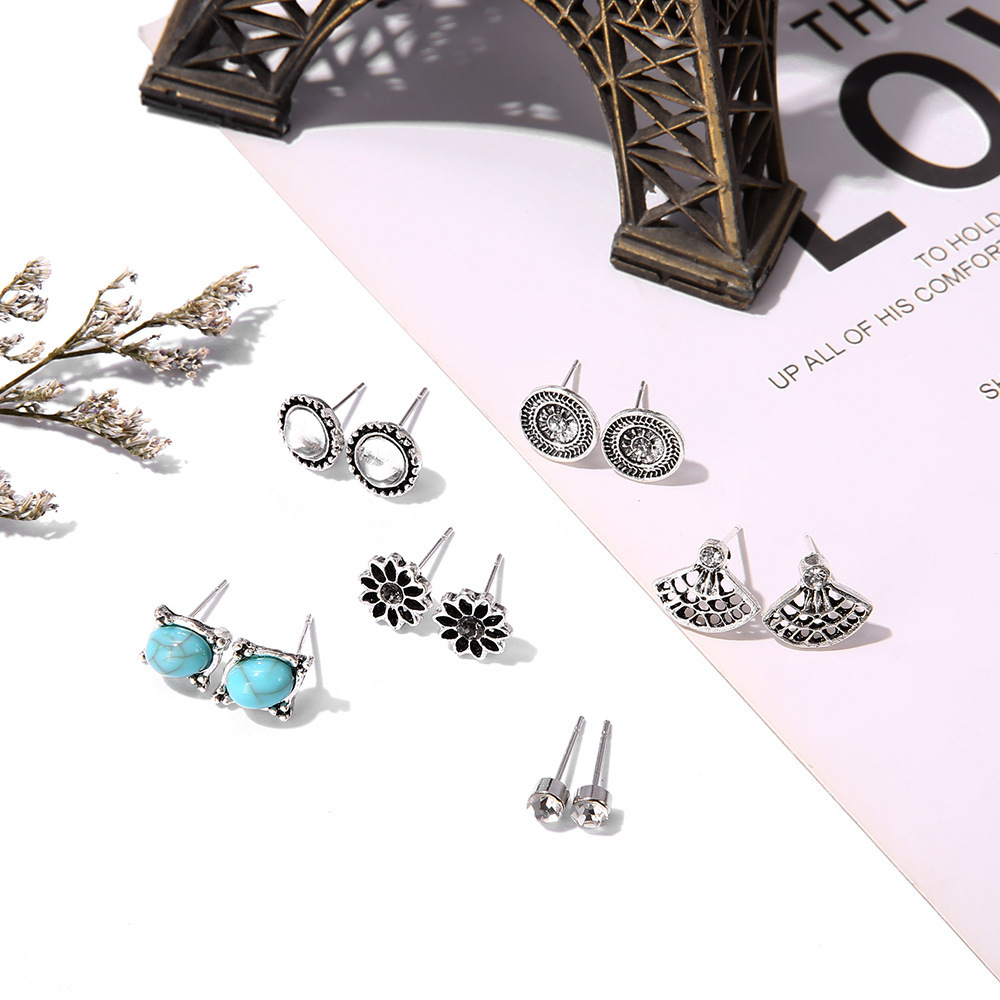 | nameOriginal | Cross-border new European and American fashion temperament Pine stone flash diamond earrings combination 6-piece earrings |