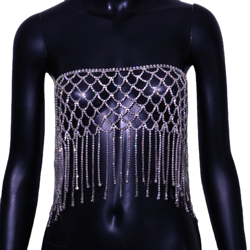 | nameOriginal | Cross-border new European and American sexy bikini chest chain exaggerated grid tassel rhinestone body chain |