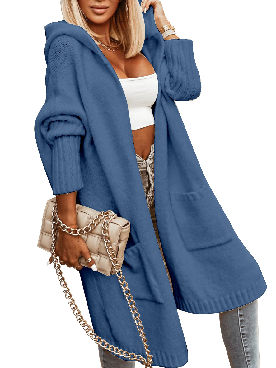 | nameOriginal | Cross-border New European and American Women's Hooded Solid Color Mid-length Sweater Fashion Casual Pocket Long Sleeve Coat Jacket |