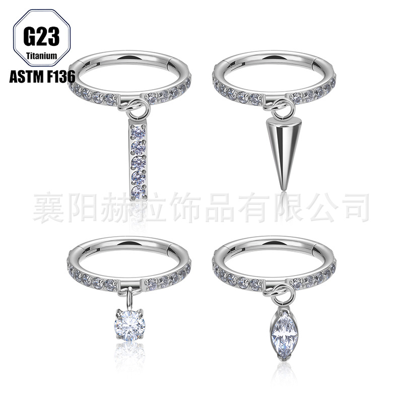 | nameOriginal | Cross-border new F136 back set stone with pendant earrings earrings G23 titanium alloy body piercing jewelry nose ring |