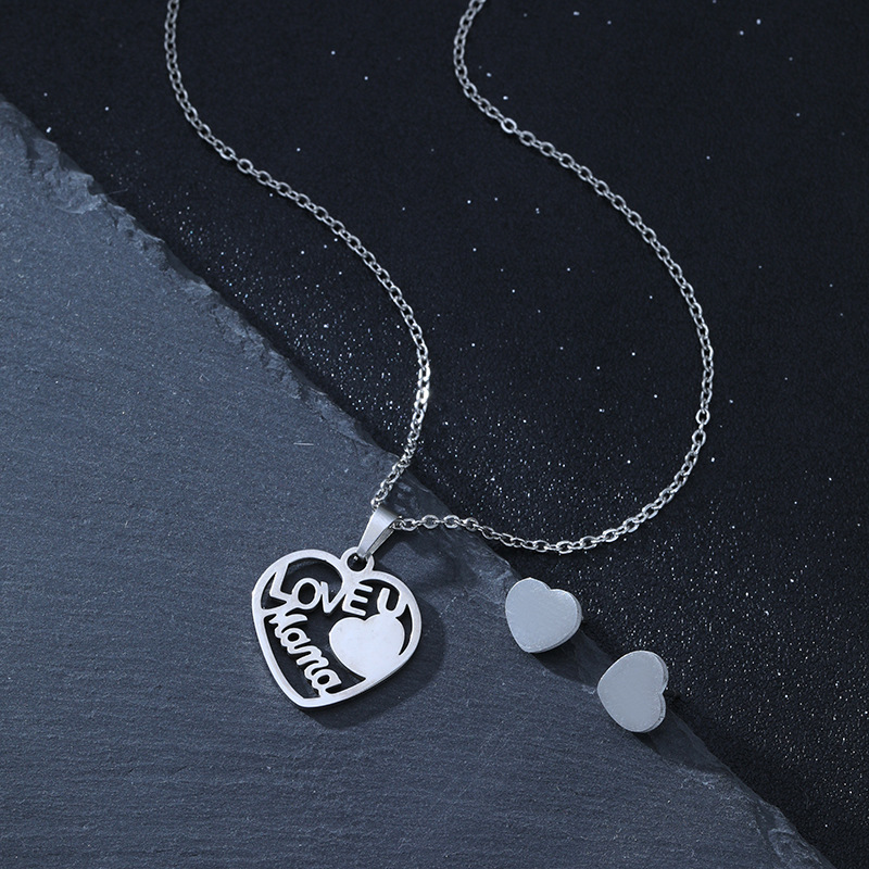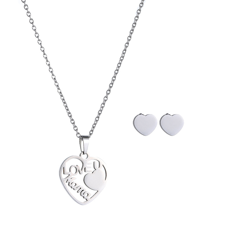 | nameOriginal | Cross-border new hollow love necklace earrings ladies simple design pendant Joker stainless steel o-chain wholesale |
